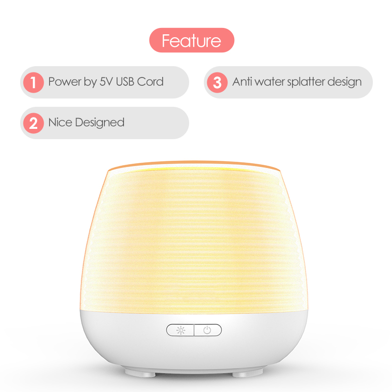 Presented here is an essential oil diffuser powered by USB. With USB power supply matched to a compact design, this portable diffuser can be brought to work, business trips, and more. It also comes with a 100-millimeter tank with five hours of working time and an RGB light so it can be doubled as a nightlight. Multi-functional and portable, this essential oil diffuser is suitable for all.