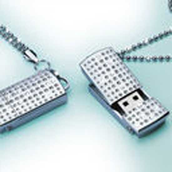 Presented is a USB flash disk featuring a metallic shell. The exterior of it comes with a dotted design. This stylish USB drive also comes with a practical storage capacity.