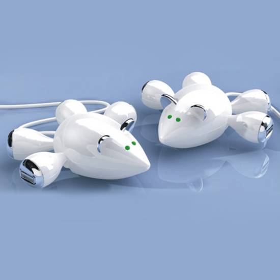 These are USB hubs with the shape of mouse. They have metallic ear edges, glossy surface and green eyes, which gives them a cyber-look.