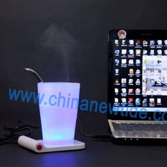 This featured USB humidifier supports high-tech wireless power supply. The cup-shaped design is dainty and space-saving. It employs ultrasonic technology to work.
