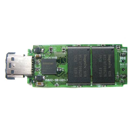 This is a USB pen drive. The case of the USB pen drive is removed to display the information located in the memory chips. The USB pen drive adopted high quality and performance hynix chips.