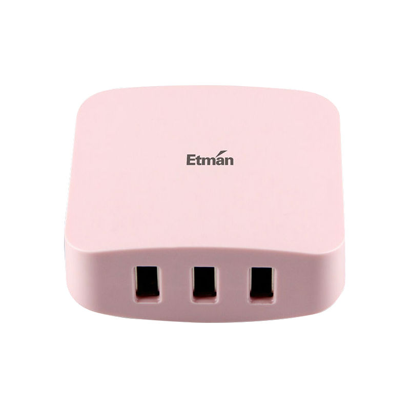 This USB charger comes with 3 ports for charging. It is square shaped and is adorned with brand name on the exterior. This functional and portable USB charger can keep your electronic devices well-charged.