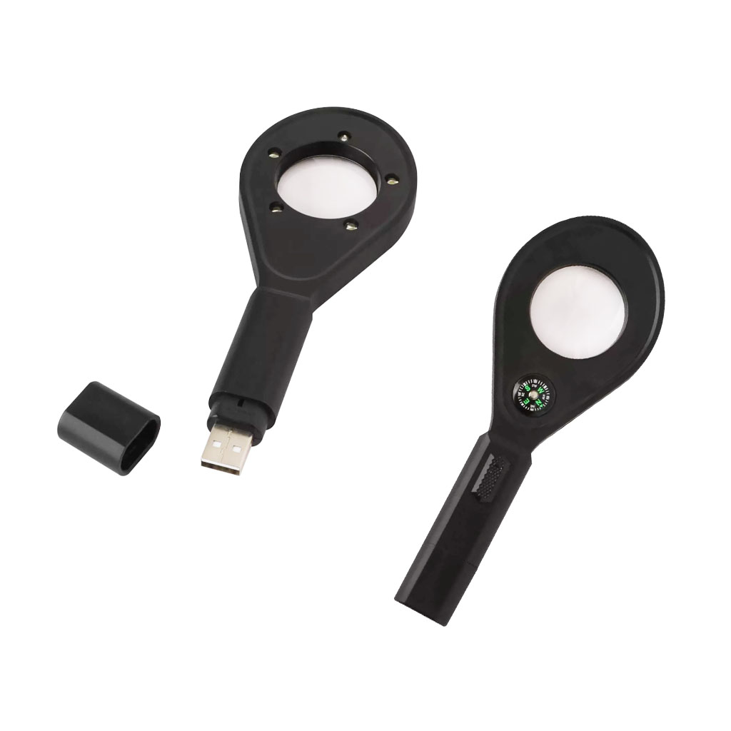 USB Rechargeable Pocket Magnifier with 5 LED and Compass includes the following features :