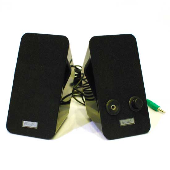 Highlighted is a pair of computer speakers featuring USB connection. The speakers boast excellent audio performance for playing high-quality files. The knob buttons on the speaker let you control the volume easily.