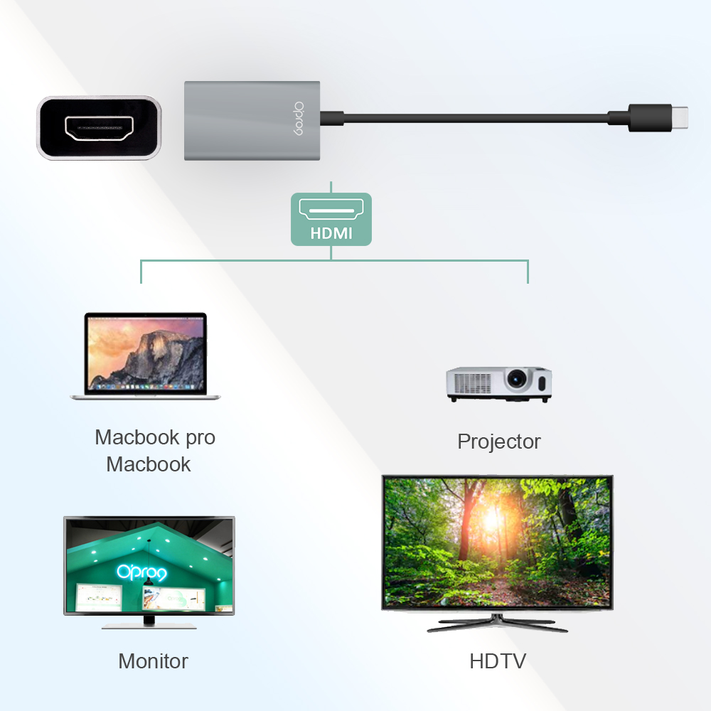 Nowadays, laptops are becoming more and more lightweight. Many large-scale notebook computers have adopted USB-C ports, and they are pursuing thin and light designs. As the expansion slot of the device has shrunk, Opro9 has developed a USB-C to HDMI adapter for user convenience. It can easily transfer to projectors, displays and TVs, weighs only 15 grams, and supports 4K@30Hz ultra high definition resolution, displaying synchronized video and audio on both displays. It is suitable for USB-C or Thunderbolt™ 3 interface Notebook computer; simply plug and play, with no need to install drivers. Simple and convenient, with a number of international FCC, CE and RoHS certifications, product quality and stability is ensured so that you can use it with minimal fuss.