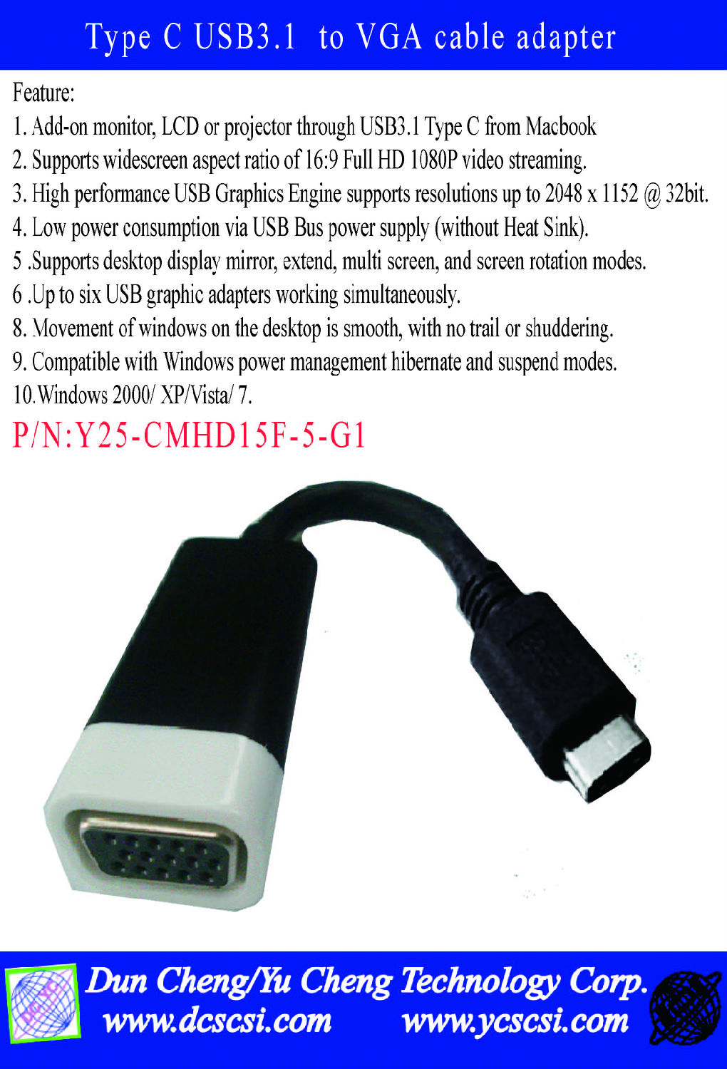USB3.1 C TYPE MALE TO VGA FEMALE CABLE ADAPTER L:10CM