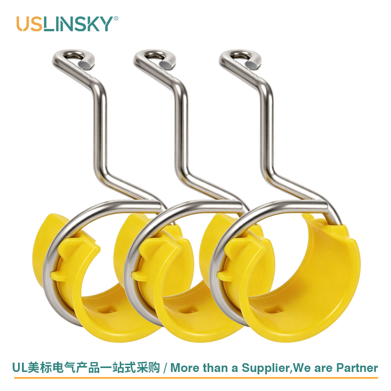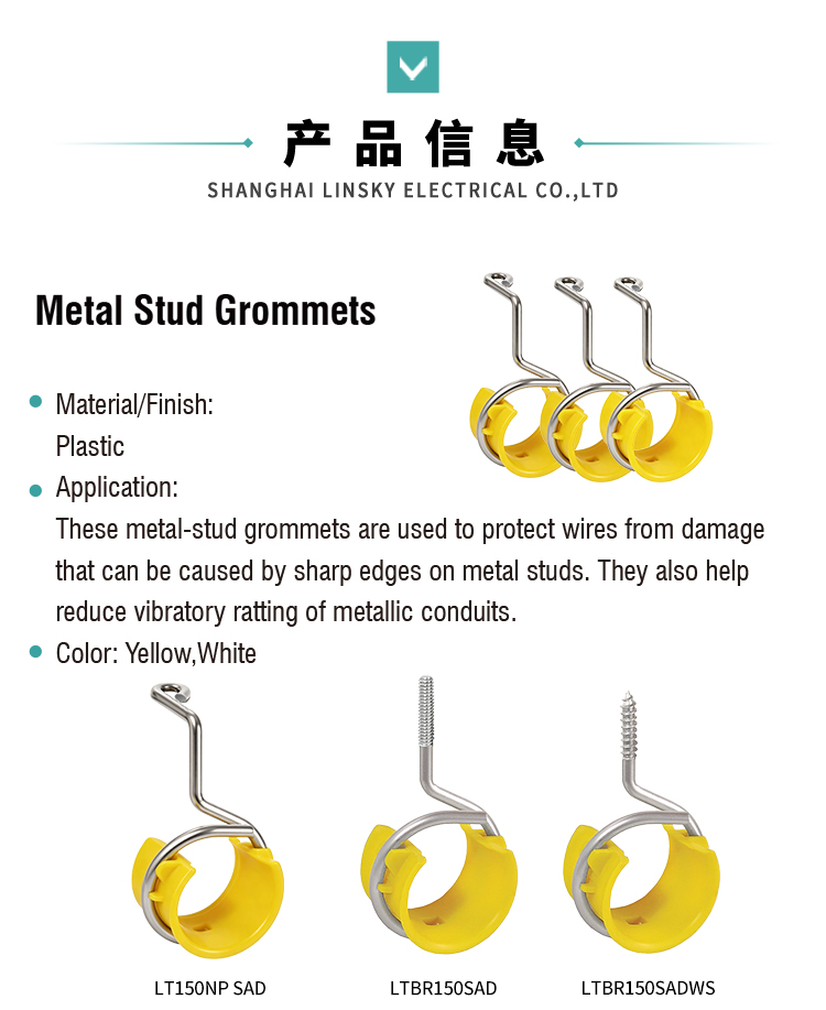 These metal-stud grommets (bridle rings with data-cable saddle) are designed to protect electrical wires and cables from damage caused by sharp edges on metal studs during installation. They also effectively reduce vibratory ratting of metallic conduits, ensuring a safe and quiet wiring system.
