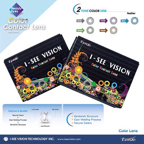 I-See Vision utilizes sandwich technology to produce color lenses, avoiding pigment contacting with eyes directly, offering greater wearing comfort. The contacts are meticulously crafted in a cast molding process to reveal natural colors. There is a wide range of attractive colors for customers to choose from.