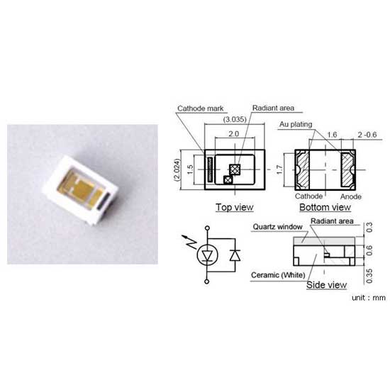 Enclosed here is a UVA LED module with an SMD design, allowing easy mounting on a small area. It features a UVA wavelength range from 315nm to 420nm, ensuring excellent performance. The well-designed construction allows long-lasting use.