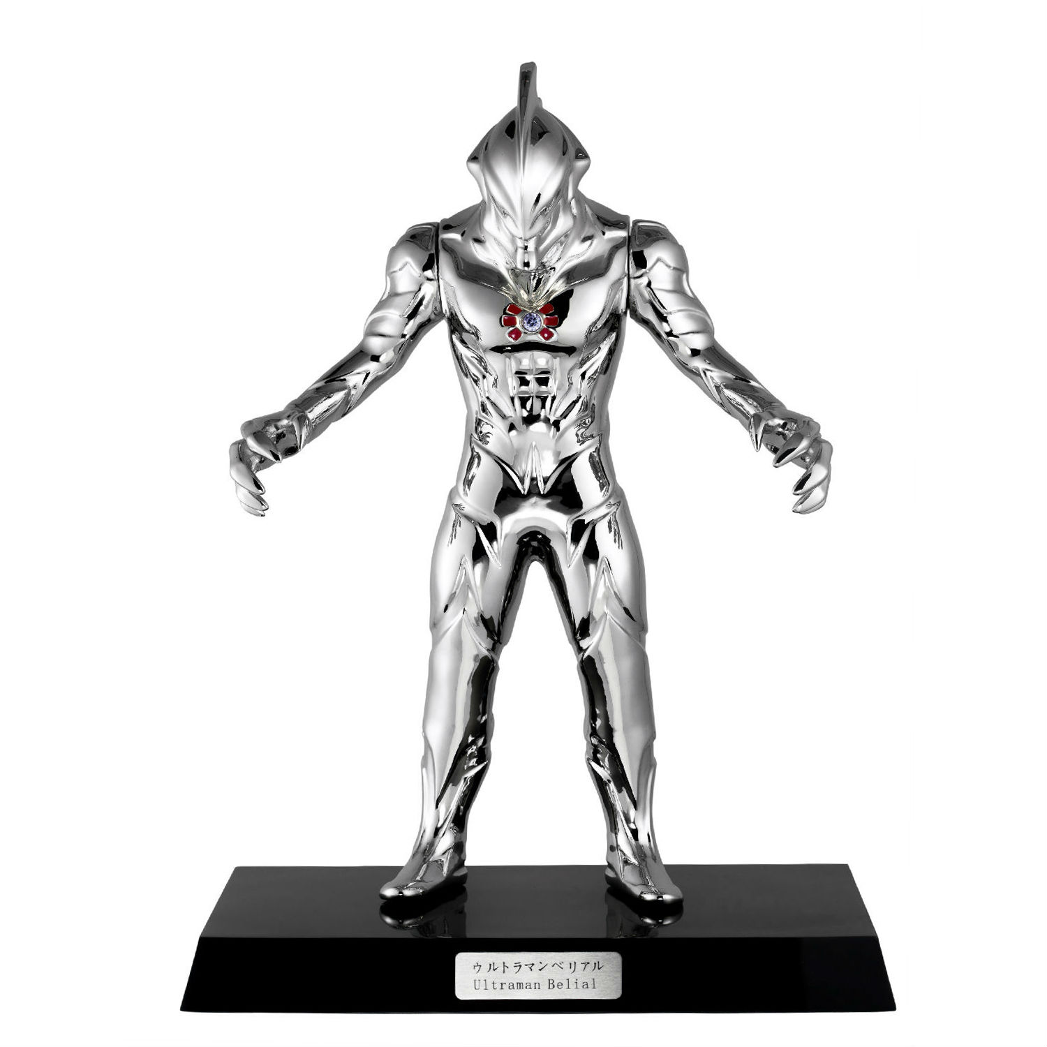 This Ultraman Belial action figure is crafted of stainless steel, sporting authenticity with a well-structured silhouette and textured lines thanks to the detailed workmanship. Standing on the stone platform with his crews expanding, this figure spices up your living area with a powerful touch.