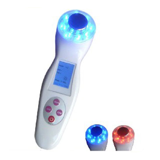 As shown is an ultrasonic facial massager with an ergonomic handle. It is designed with simple buttons to ensure user-friendliness. This massager is programmed to offer various functions: face lifting, deep cleansing, skin tightening, whitening and exfoliating.