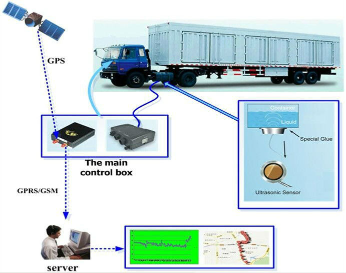 Ultrasonic fuel-level meter is used for fuel level measurement of vehicle fuel tanks in order to monitor fuel consumption.