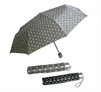 Manual open, metal frame and shaft, silver plastic handle. 170T polyester.