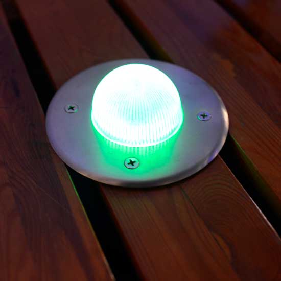 This underground light features a round-shaped stainless steel housing and a semi-spherical diffuser. The quality underground light emits soft green light to create a special mood. It is a perfect lighting option for pavements, parks and landscapes.