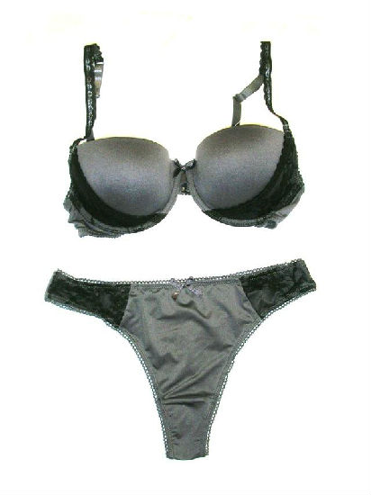 Ladies' 92% polyester 8% elastane knitted bra and brief.