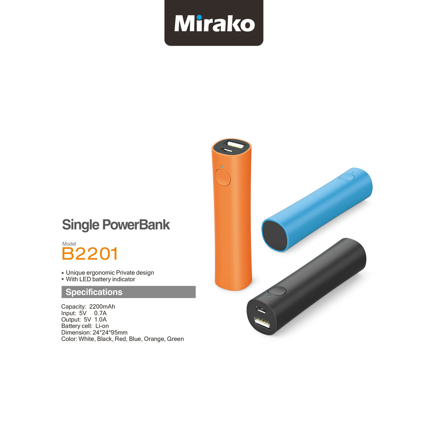 Unique Cylinder Power Bank;18650 Li-Ion Battery 2200mah; External Charger;Polymer Li Ion Battery;