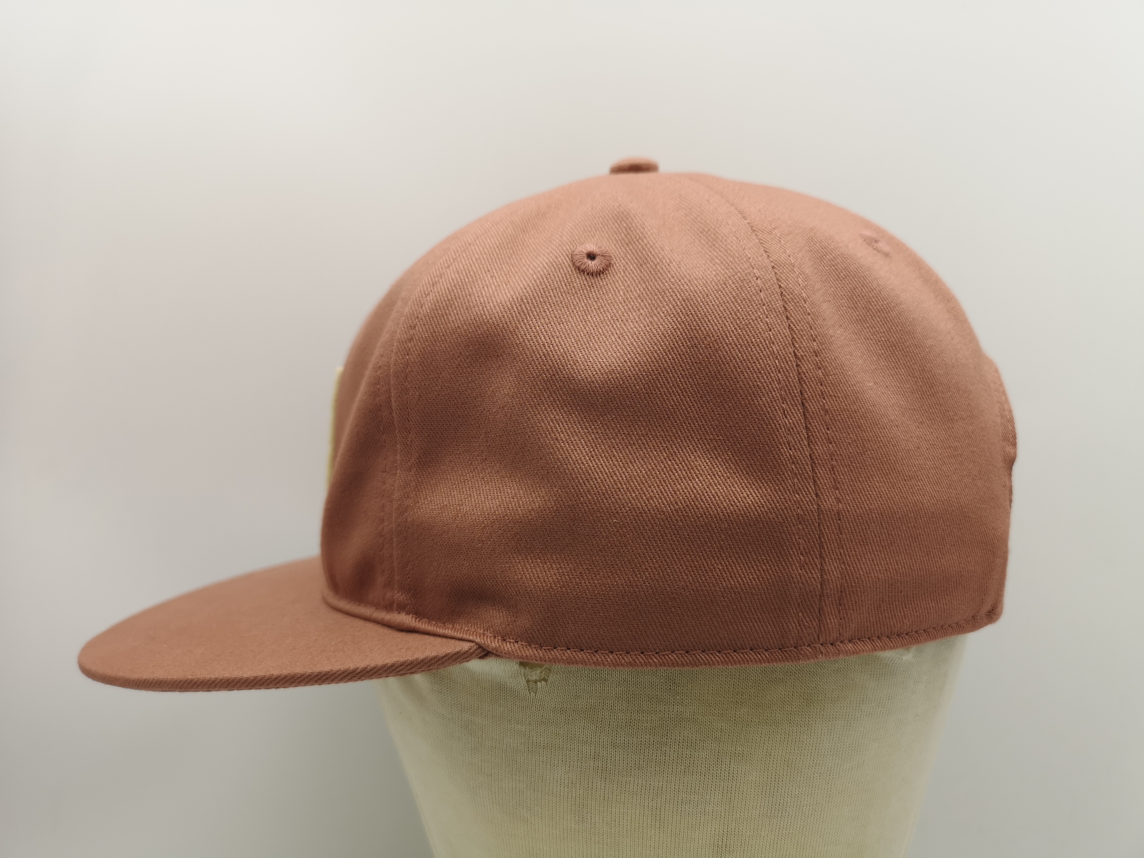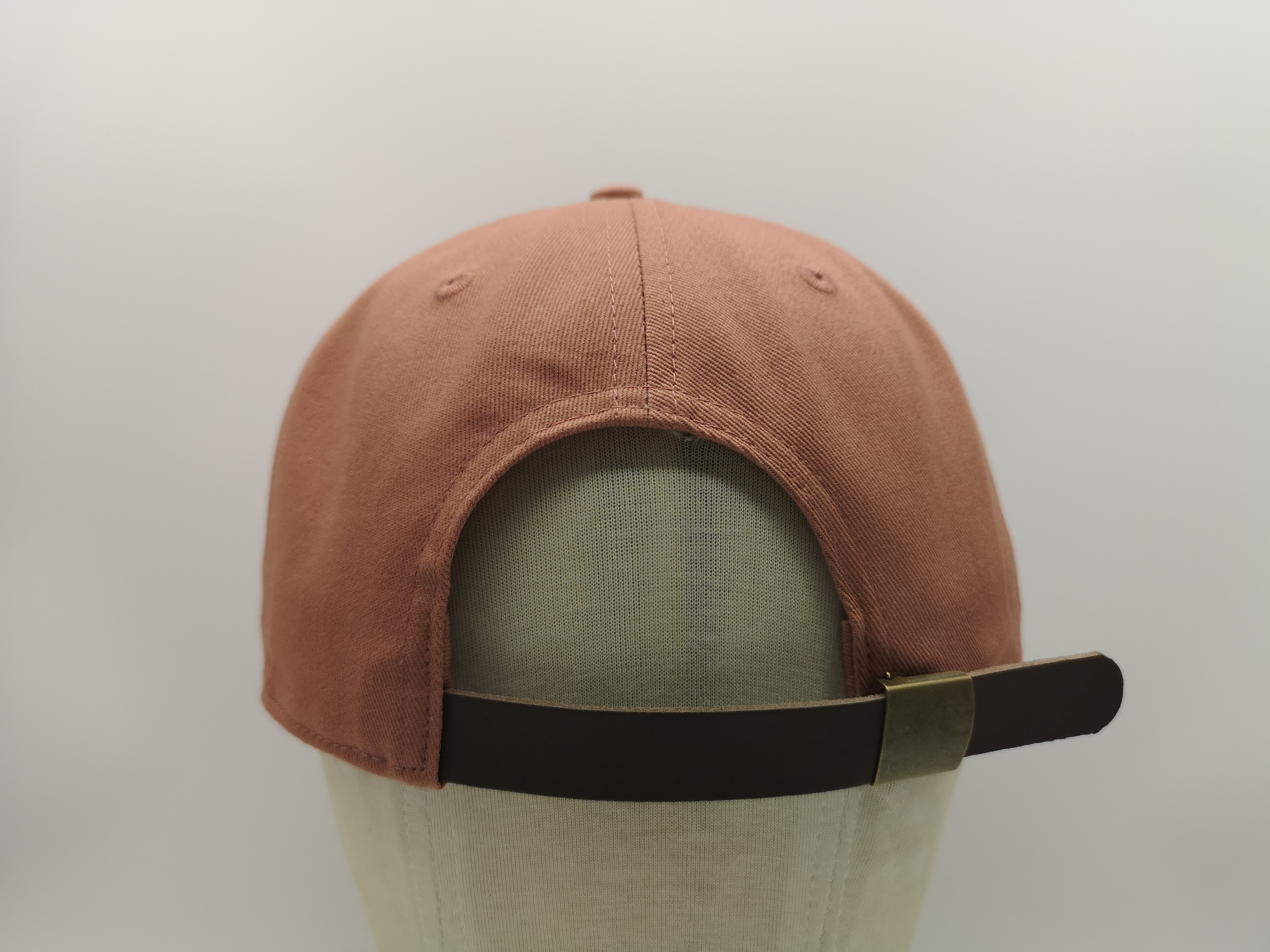 100% Cotton 6 Panels CapFlat peakFelt logo on frontSewn eyelets on each panelReal Leather Strap with antique brass buckle