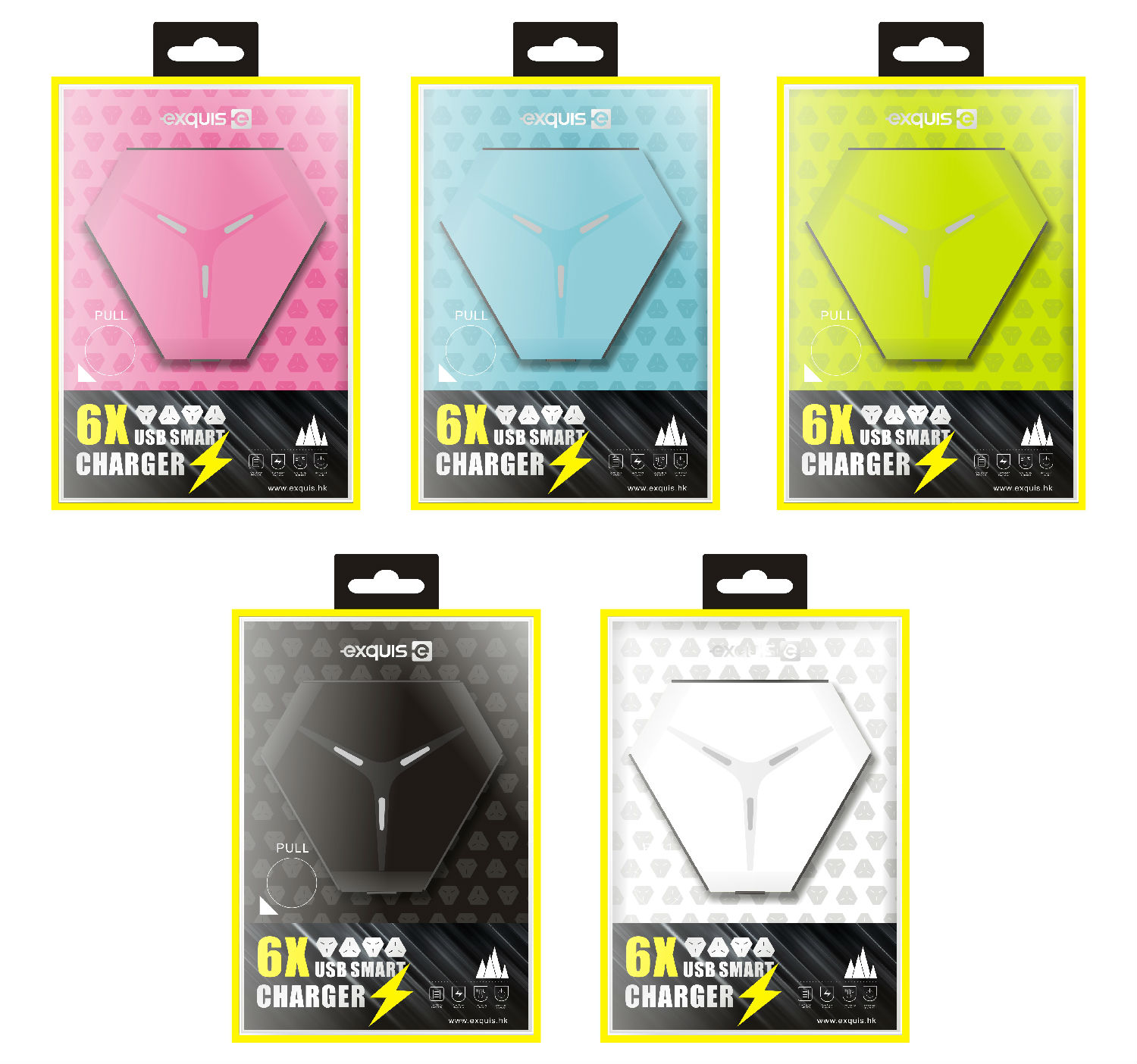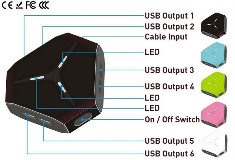 Universal Factory New Unique Design 6 Ports USB Charger Adaptor with LED Light 6A Output