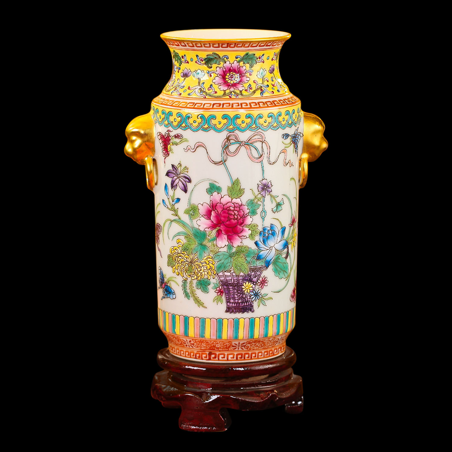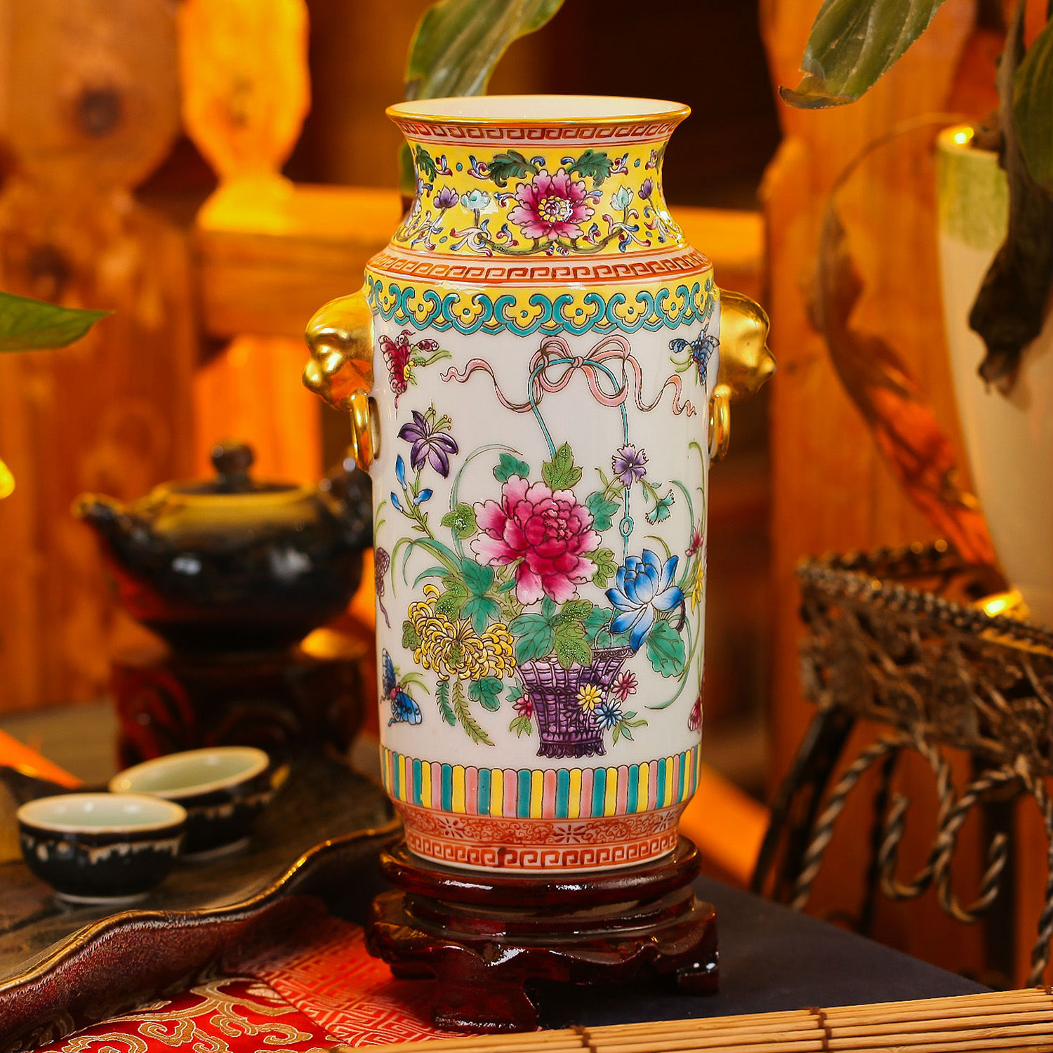 Add an elegant touch to your home décor with this enamel vase. The fetching vase comes with a circular bottom and a flared top. The body features colorful depictions of flower and other ornamental figures. Classy and sophisticated, this enamel vase fits well for domestic and outdoor use.