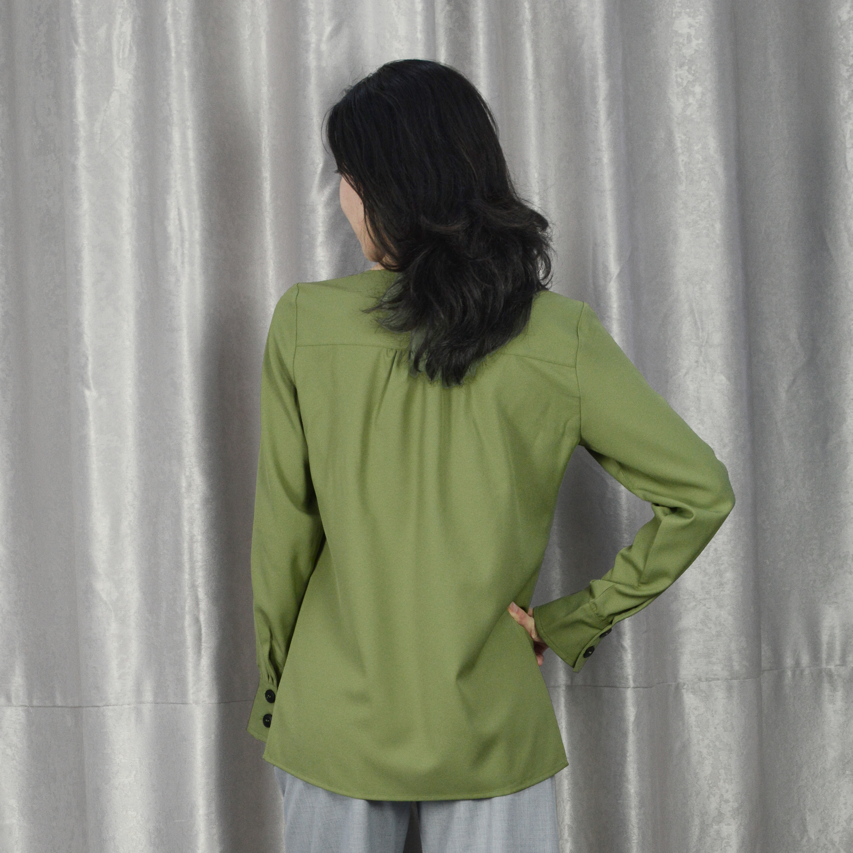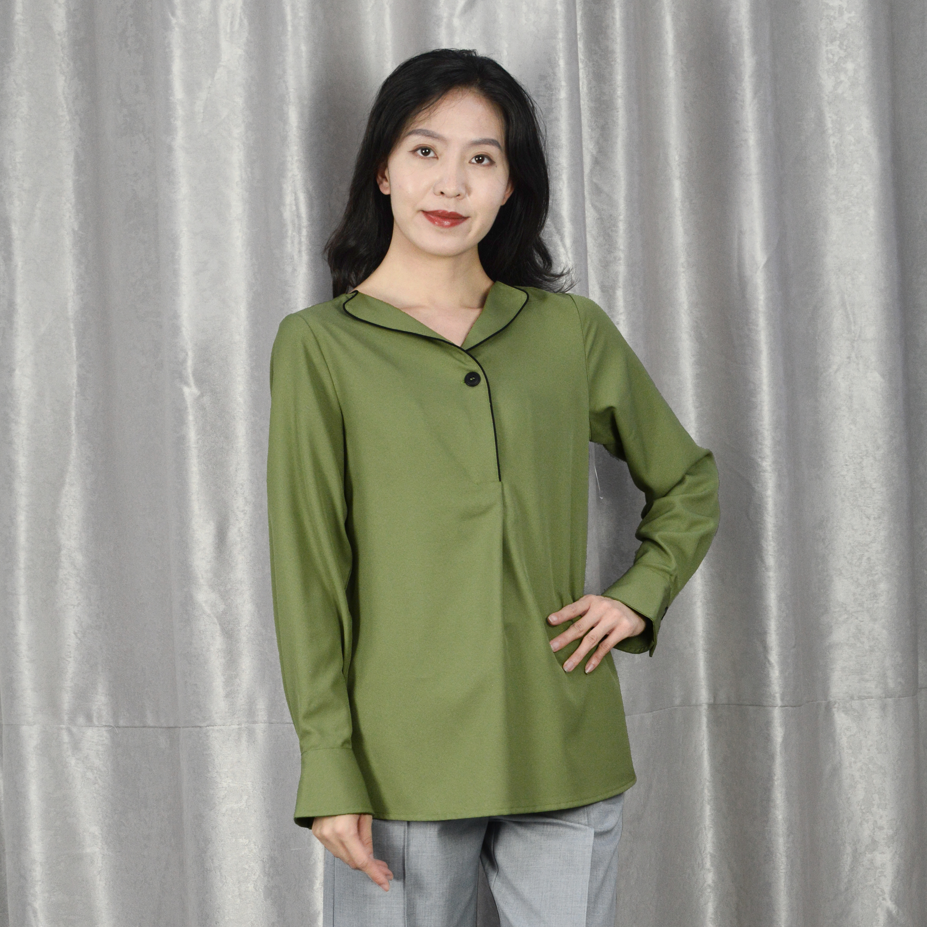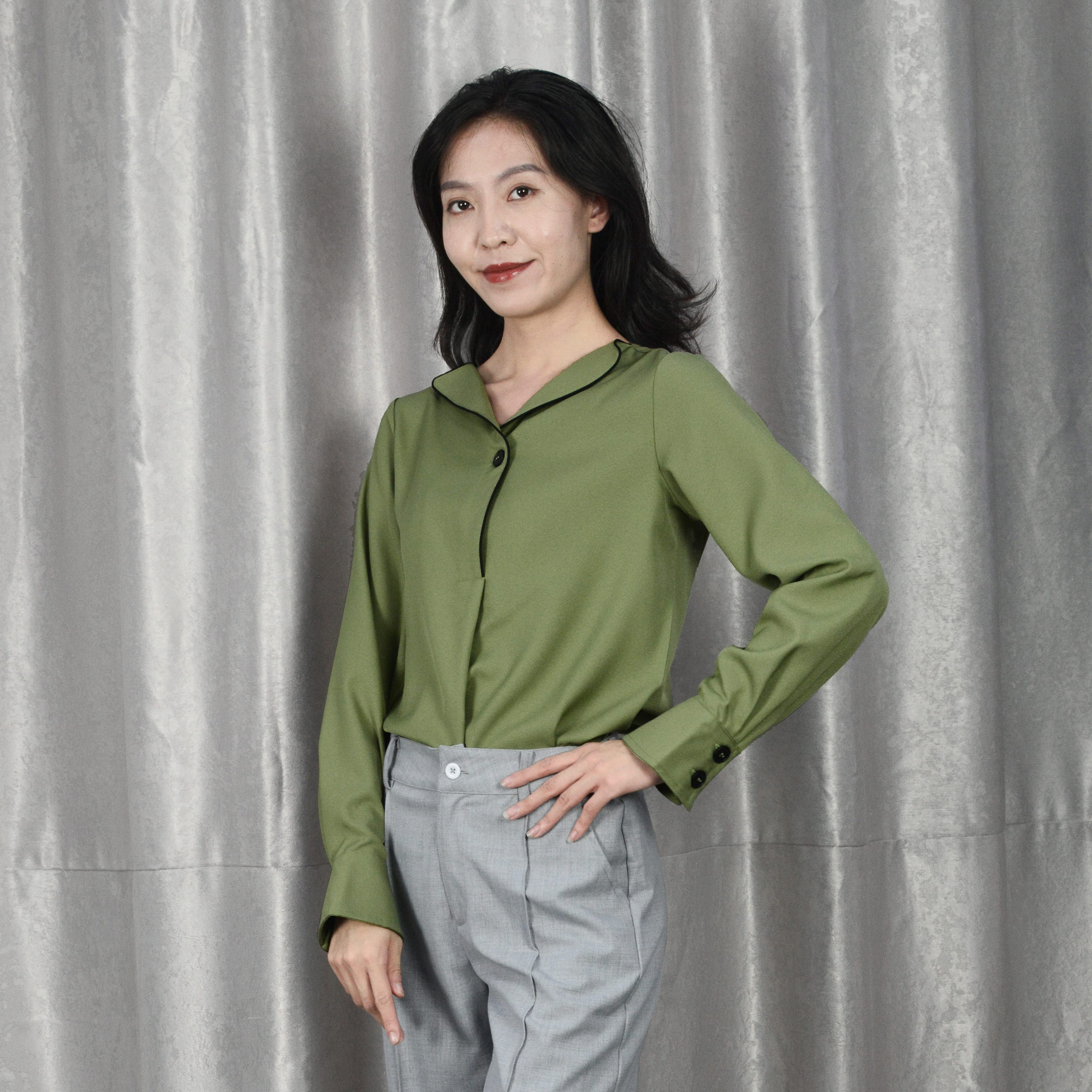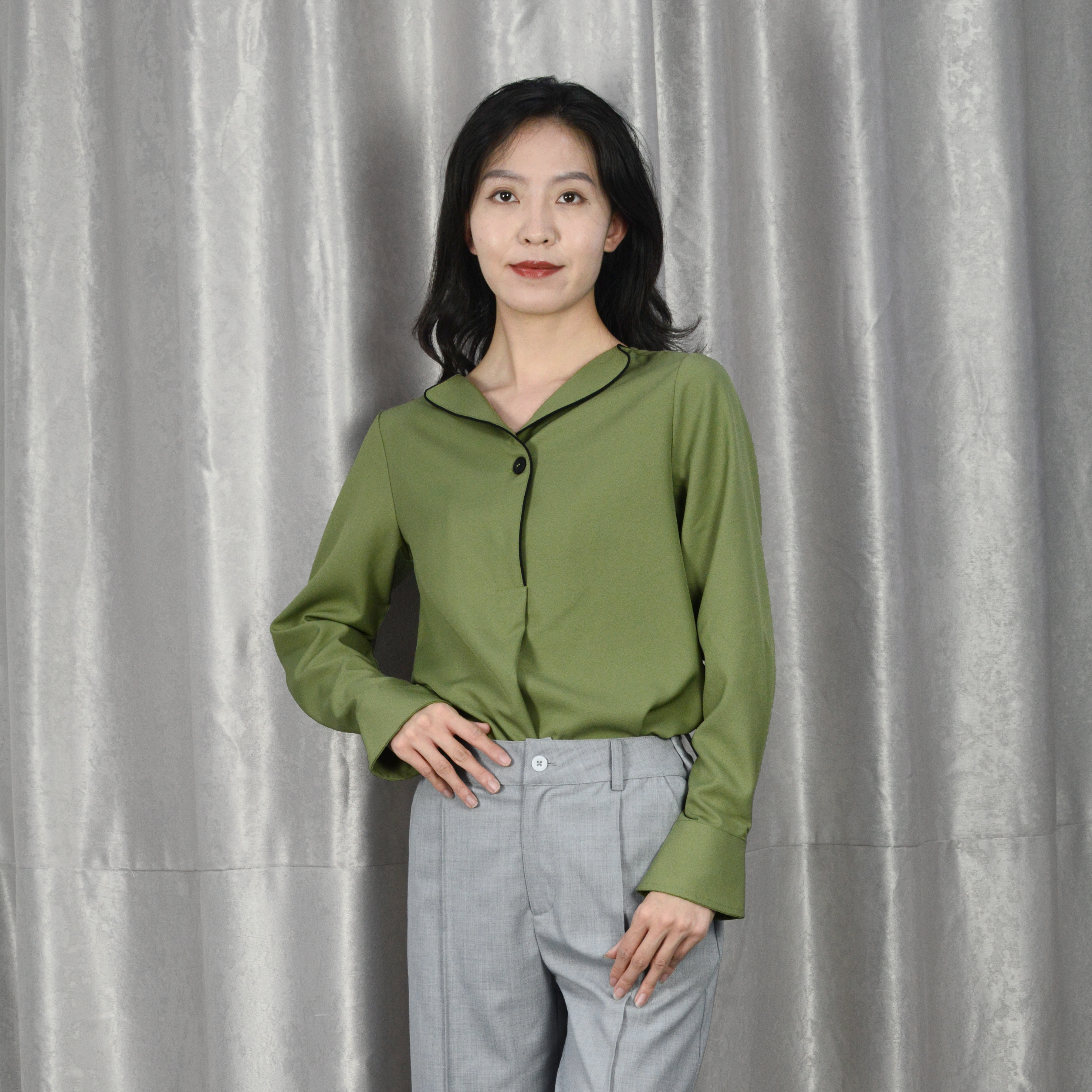 V-Neck Button Decoration Long Sleeve Fashion Blouse