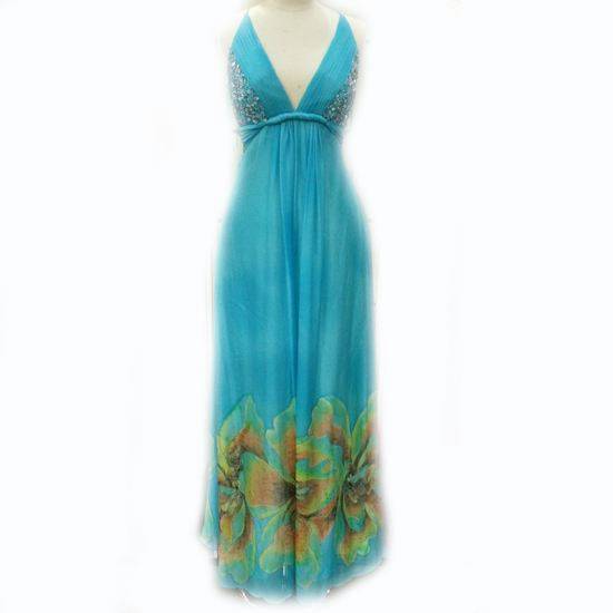 The ladies' evening dress touts a deep V-neck and twisted empire waistband, showcasing your strong fashion sense while shaping your alluring body curvatures without reservation. The sparkling sequins on the bust promises attention all-around in the crowd. With poetic blossomy floral patterns at the bottom, this maxi-length dress is an elegant evening gown of all time.