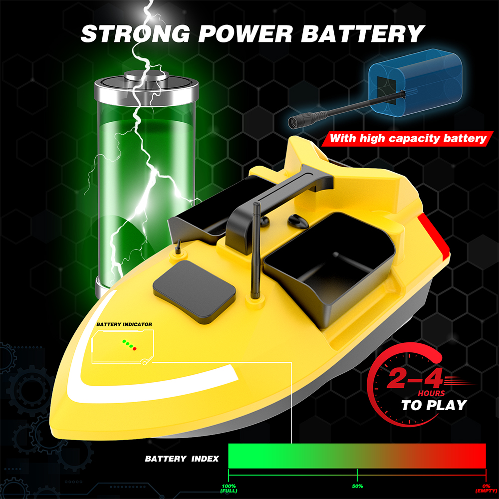 【4Hours Endurance】The bait boat is powered by a 12000mAh rechargeable battery(included),support continuous sailing for 4 hours.Removable battery makes it easy to separately charge without boat.