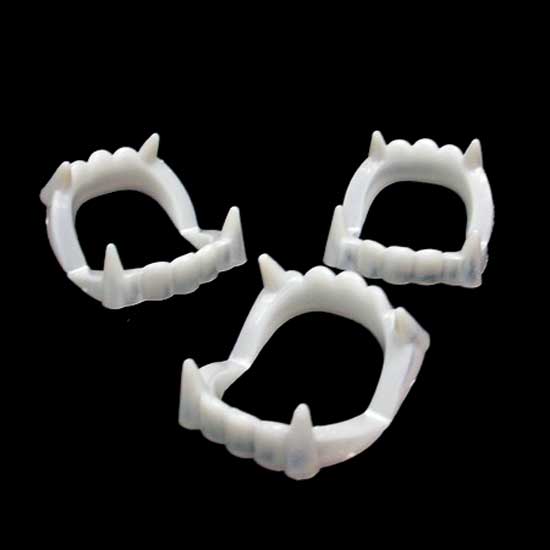 Featured is a novel toy in the shape of a pair of fake teeth. By putting it into the mouth, you can pretend to be a scary blood-sucking vampire. This novel pair of fake teeth is an ideal item for Halloween parties.