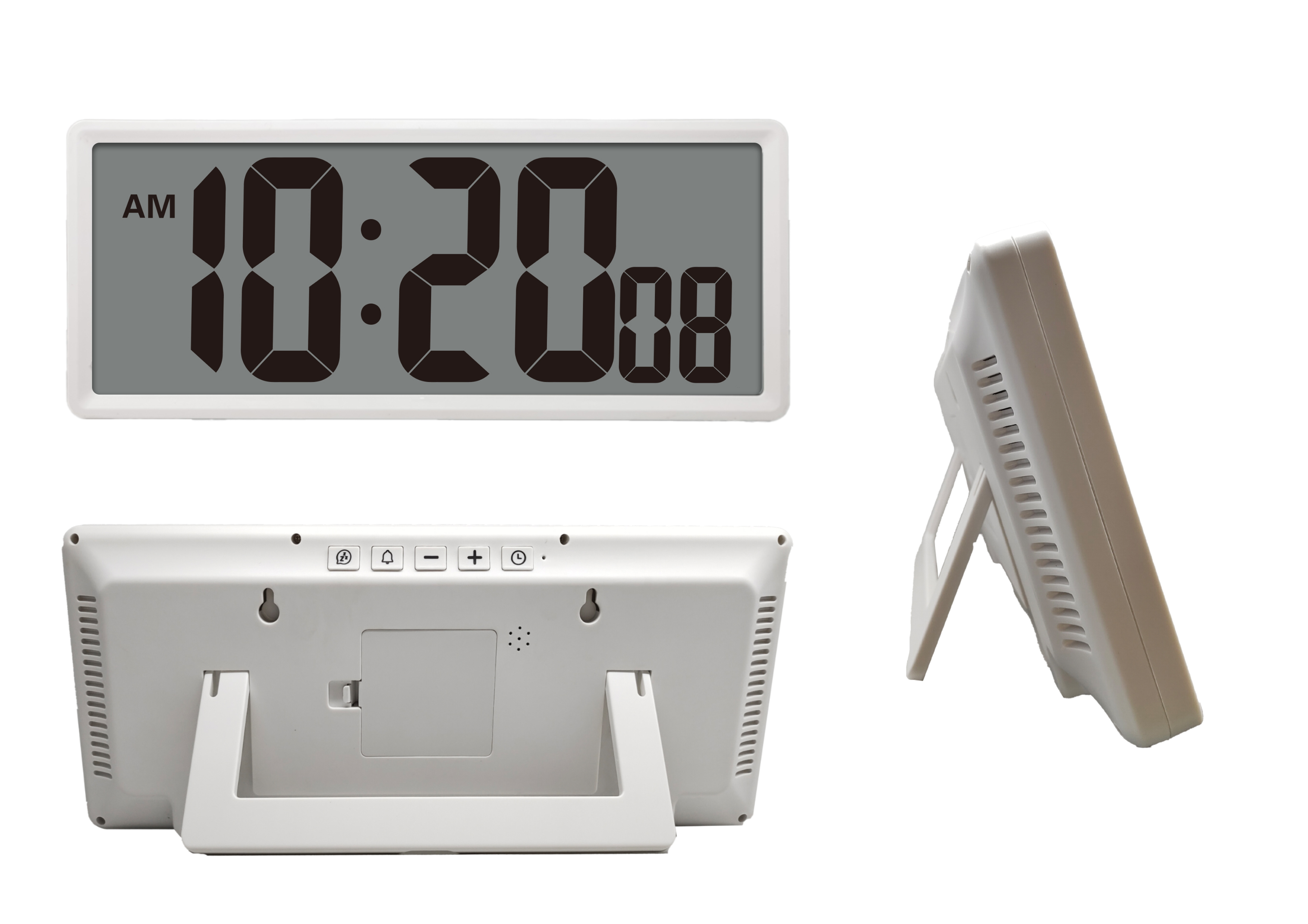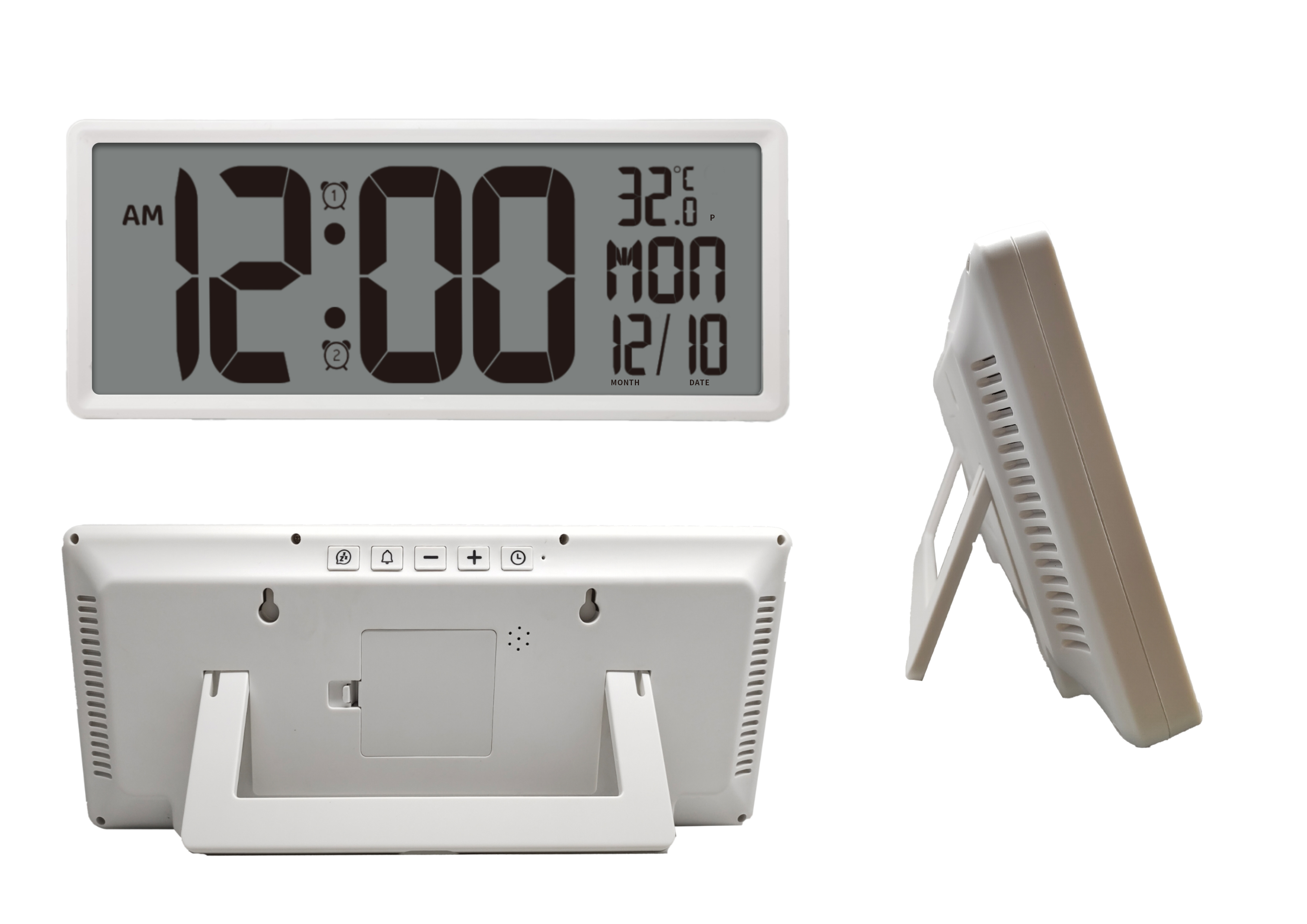 1.Jumbo LCD screen is best for the people with poor eyesight and the elderly. The user can see all informations from the clocks at once.
