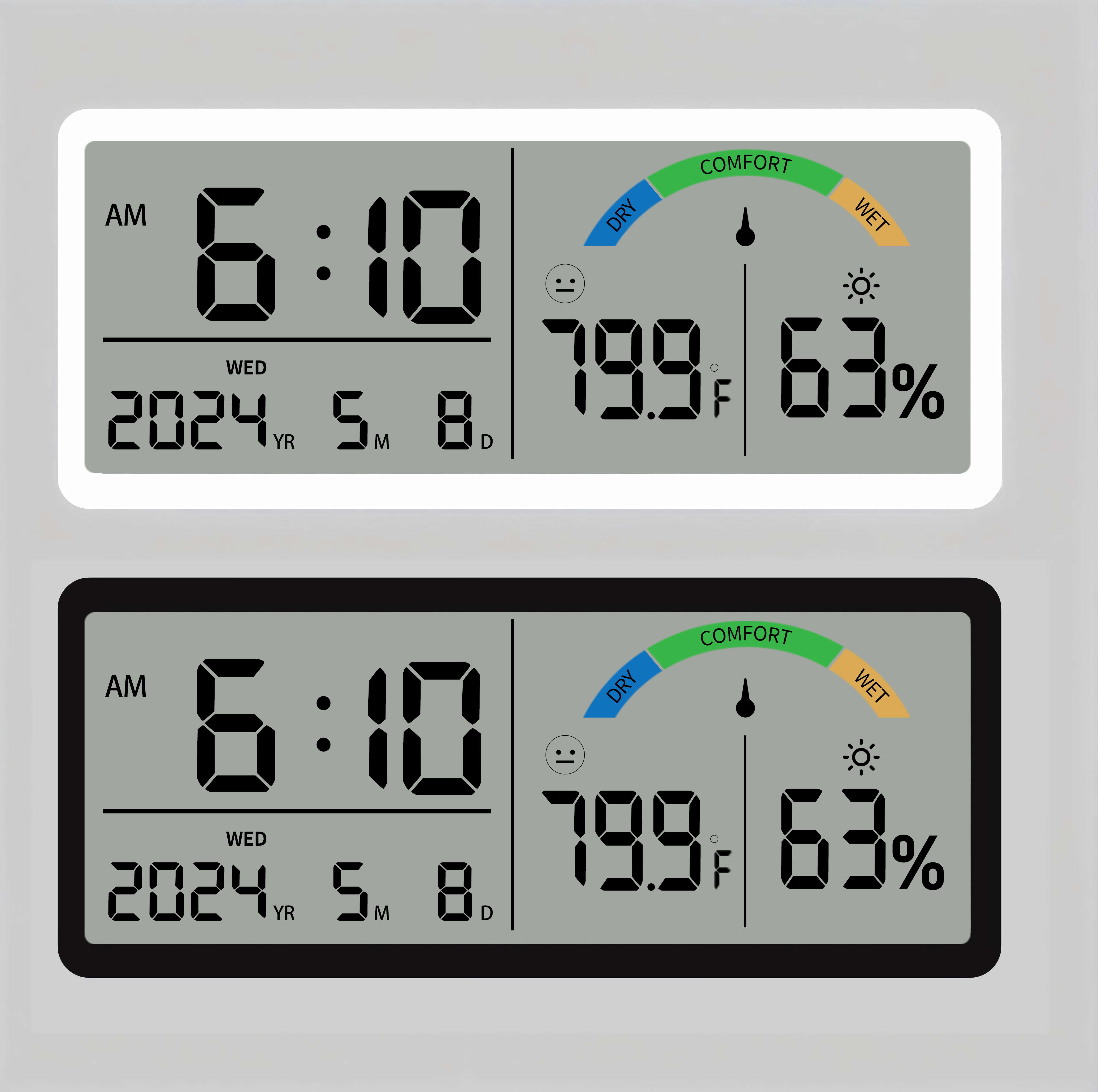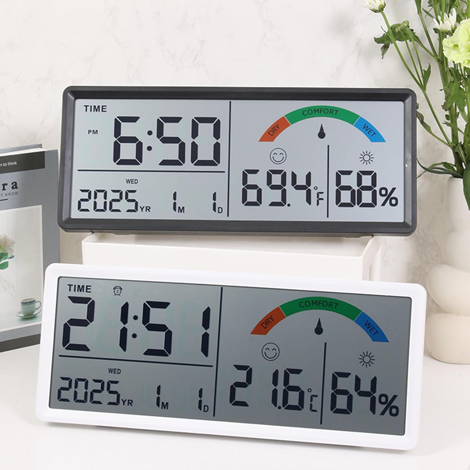 1.Jumbo LCD screen is best for the people with poor eyesight and the elderly. The user can see all informations from the clocks at once.