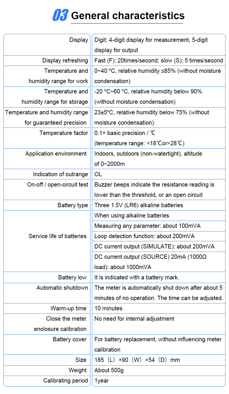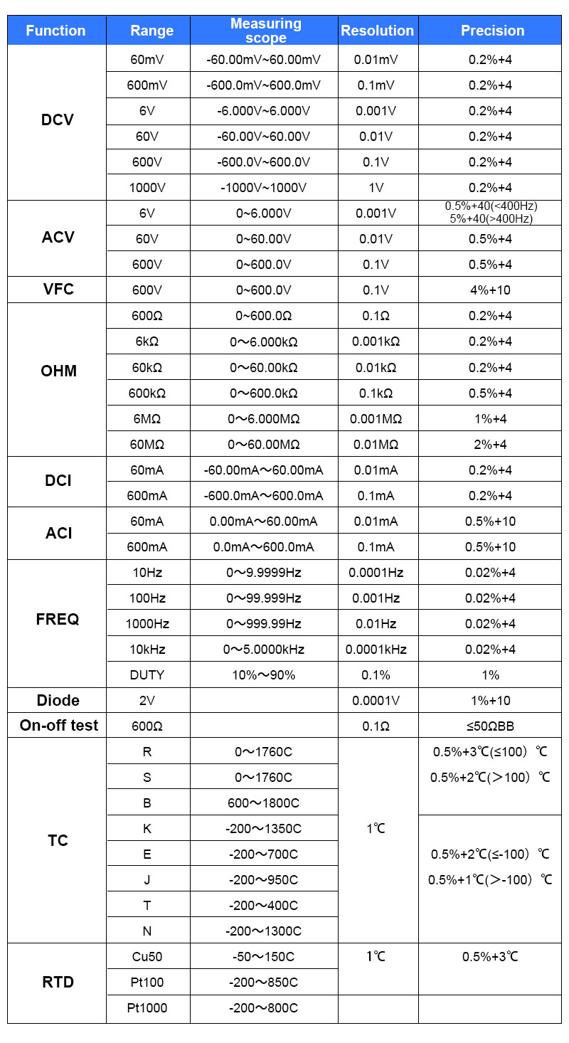 Temperature factor | 0.1× basic precision / ℃ (temperature range: <18℃or>28℃) |