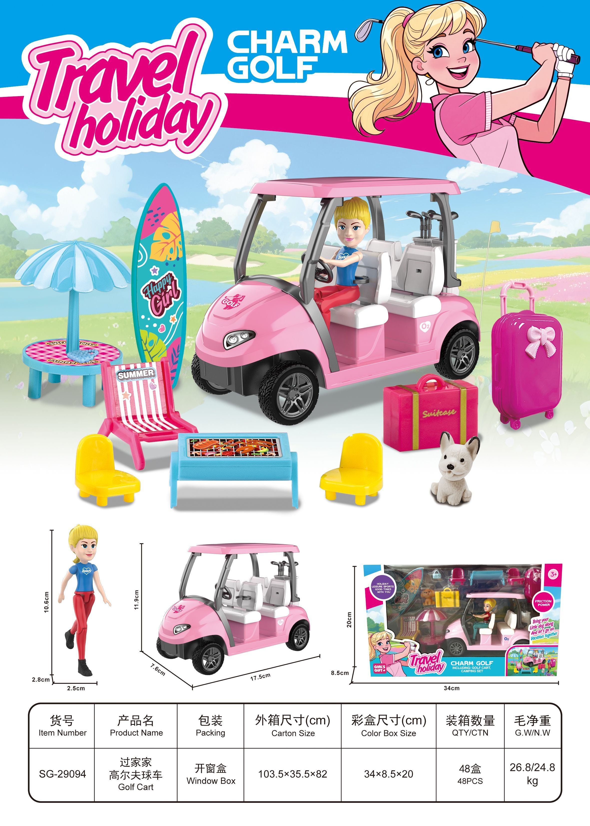 Pretend Play Golf Cart Set, complete with doll, golf cart and leisure props, various playing methods, bringing kids endless fun!