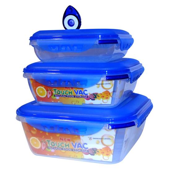 The featuring items are a set of three vacuum food containers in different sizes. They can effectively keep food fresh and tasty against oxidation, humidity and smell.