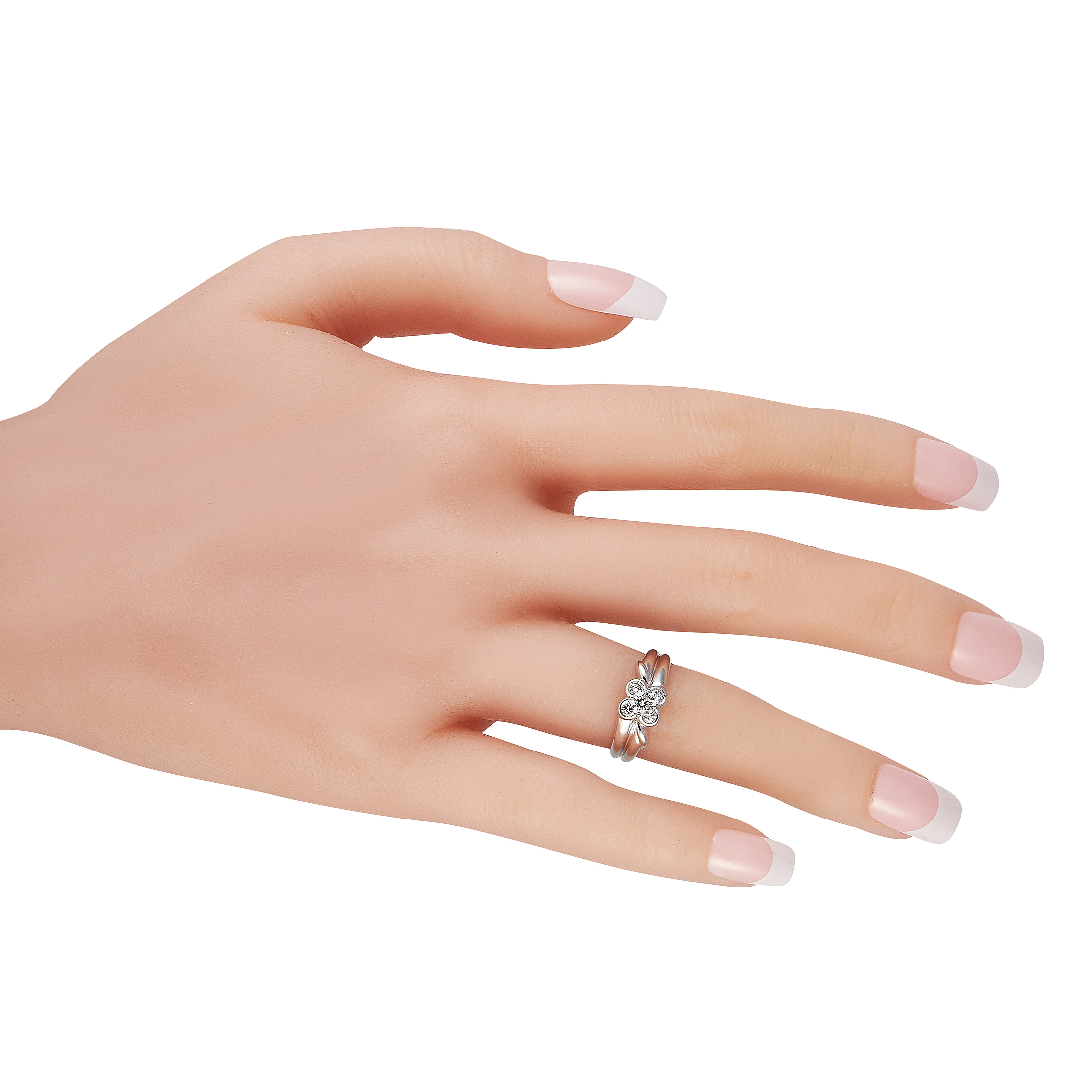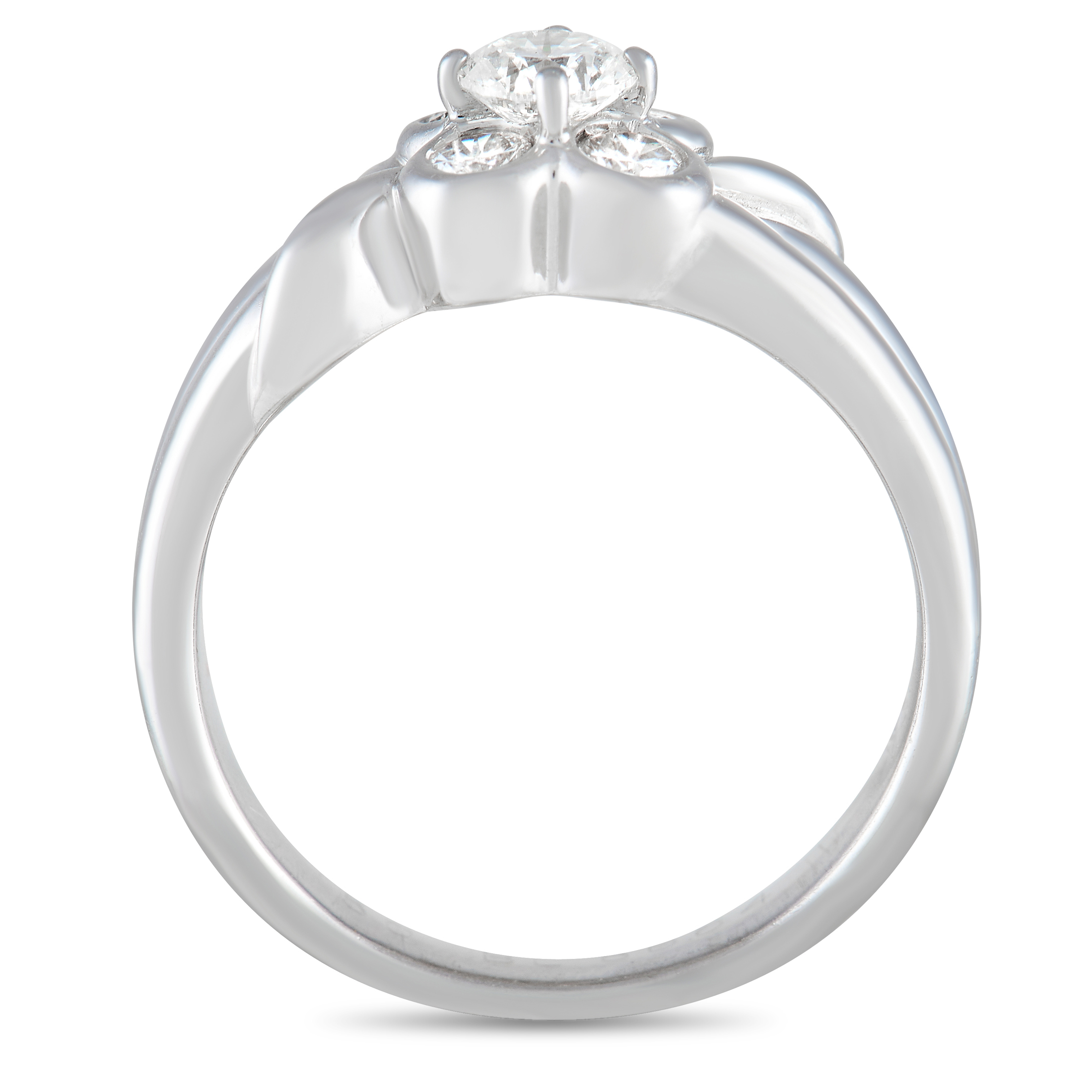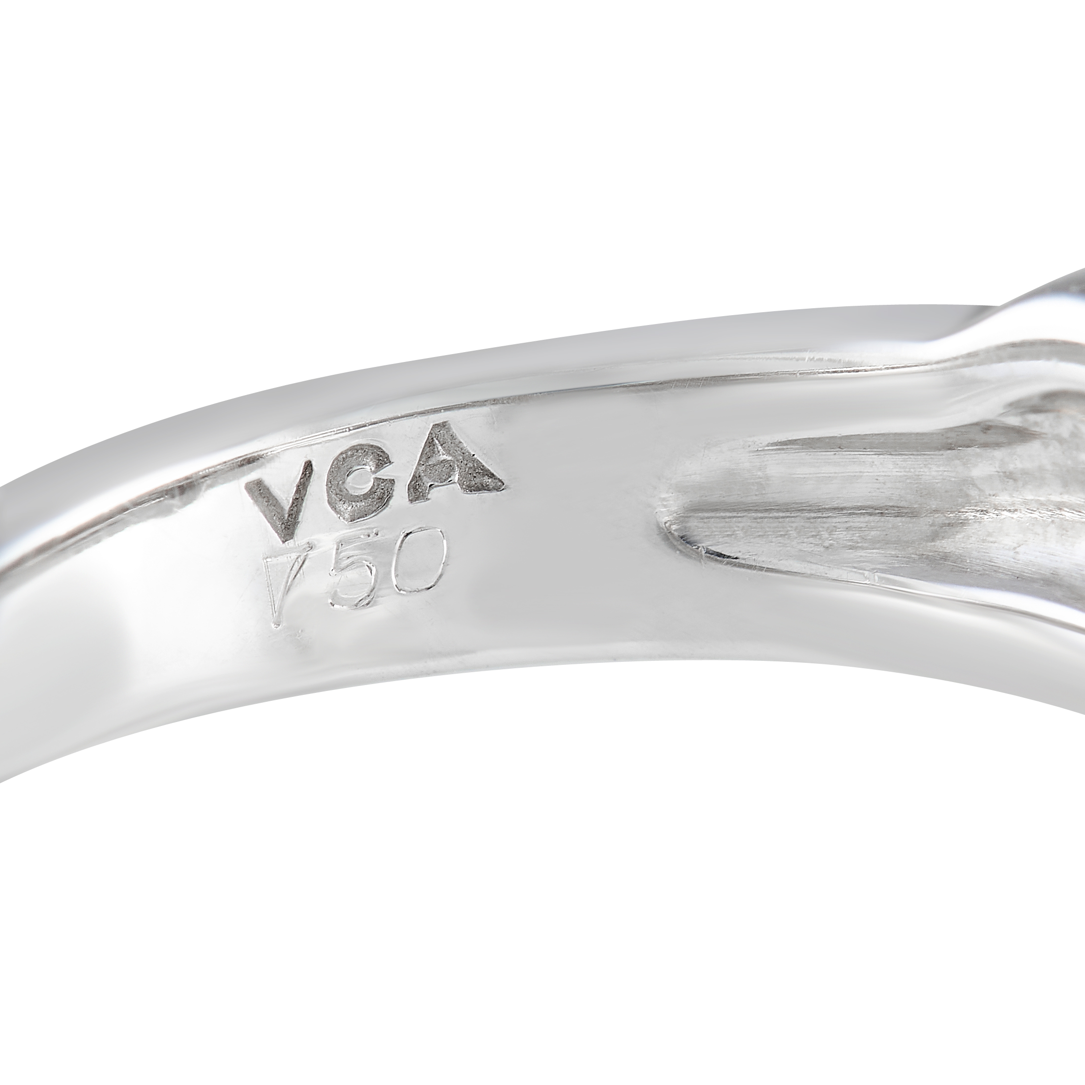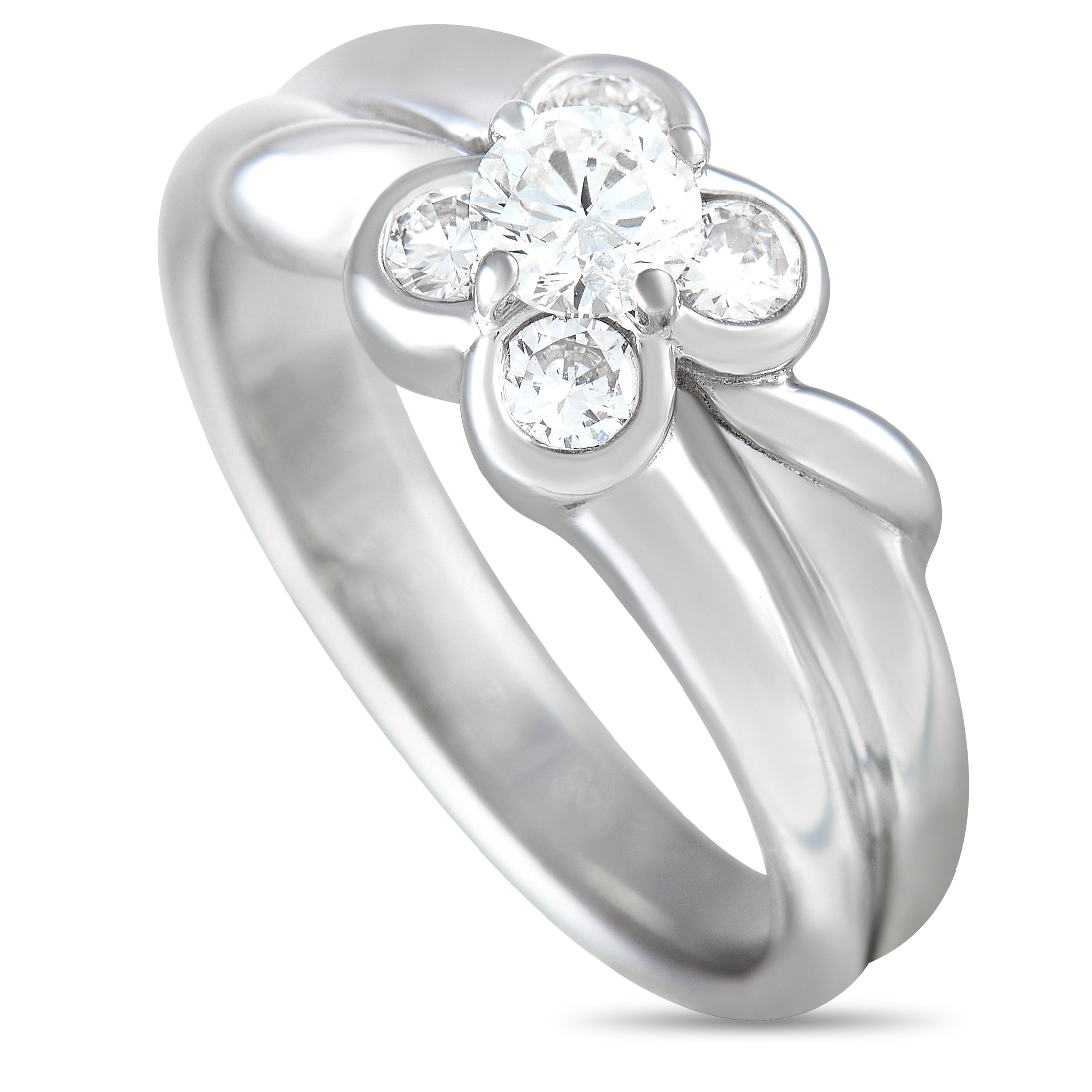 This delicate Van Cleef & Arpels ring is poised to capture your imagination. Diamonds with a total weight of 0.50 carats elevate the charming floral motif at the center of the shimmering 18K White Gold setting. This elegant accessory features a 4mm wide band and a top height measuring 5mm.
