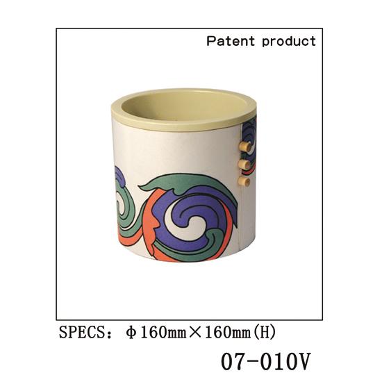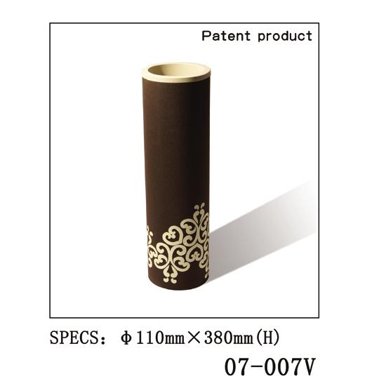 - This is a PVC vase covered with blended fabrics imprinted with leafy patterns.