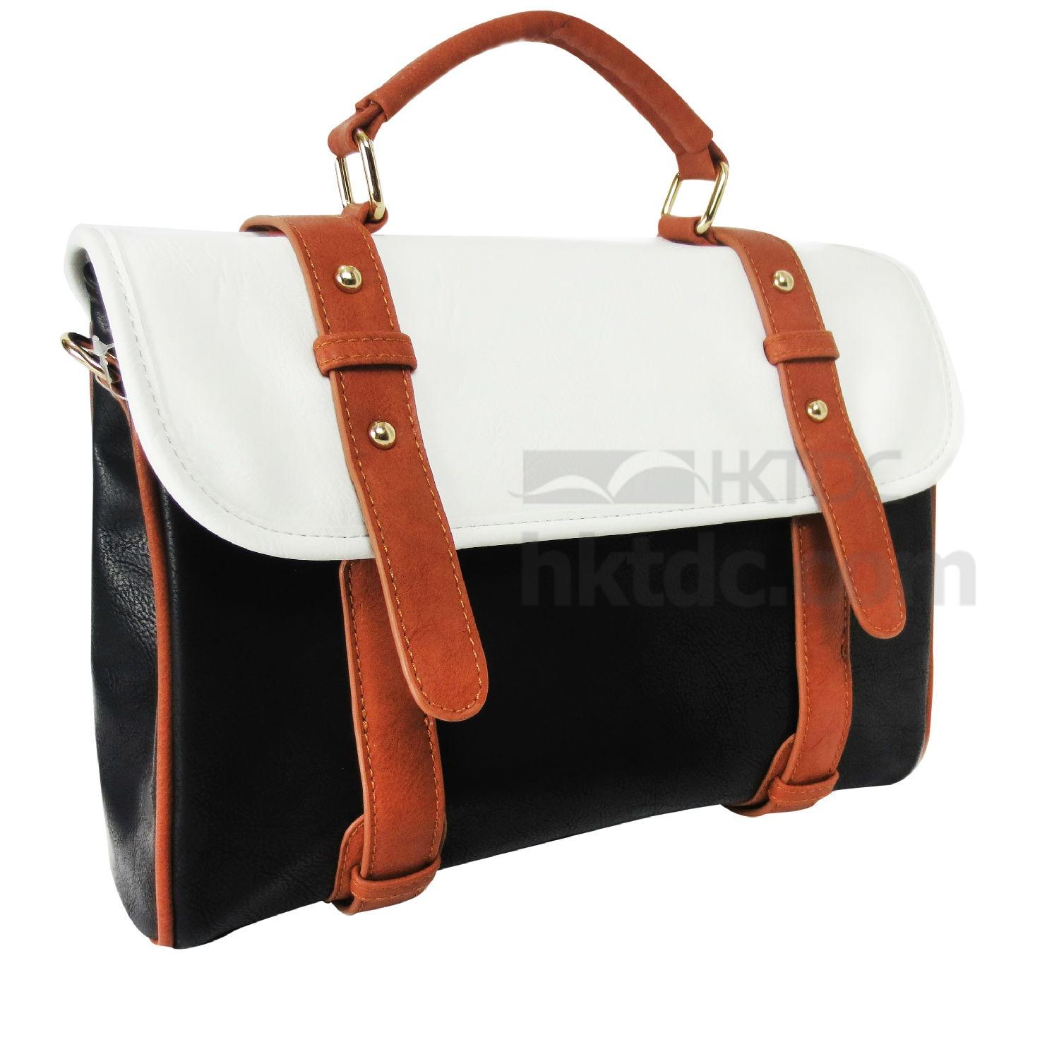 Vegan Leather Satchel Bag With Twin Buckle Straps