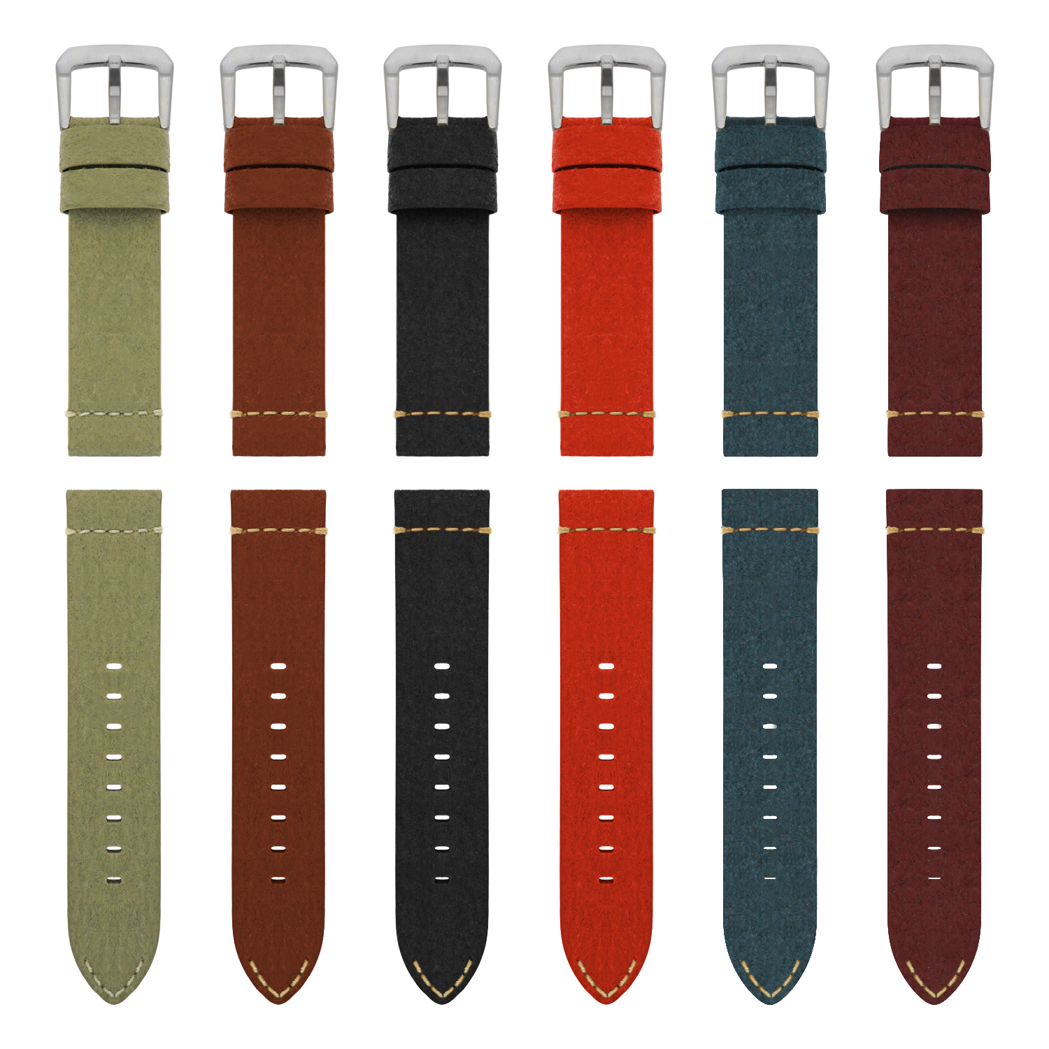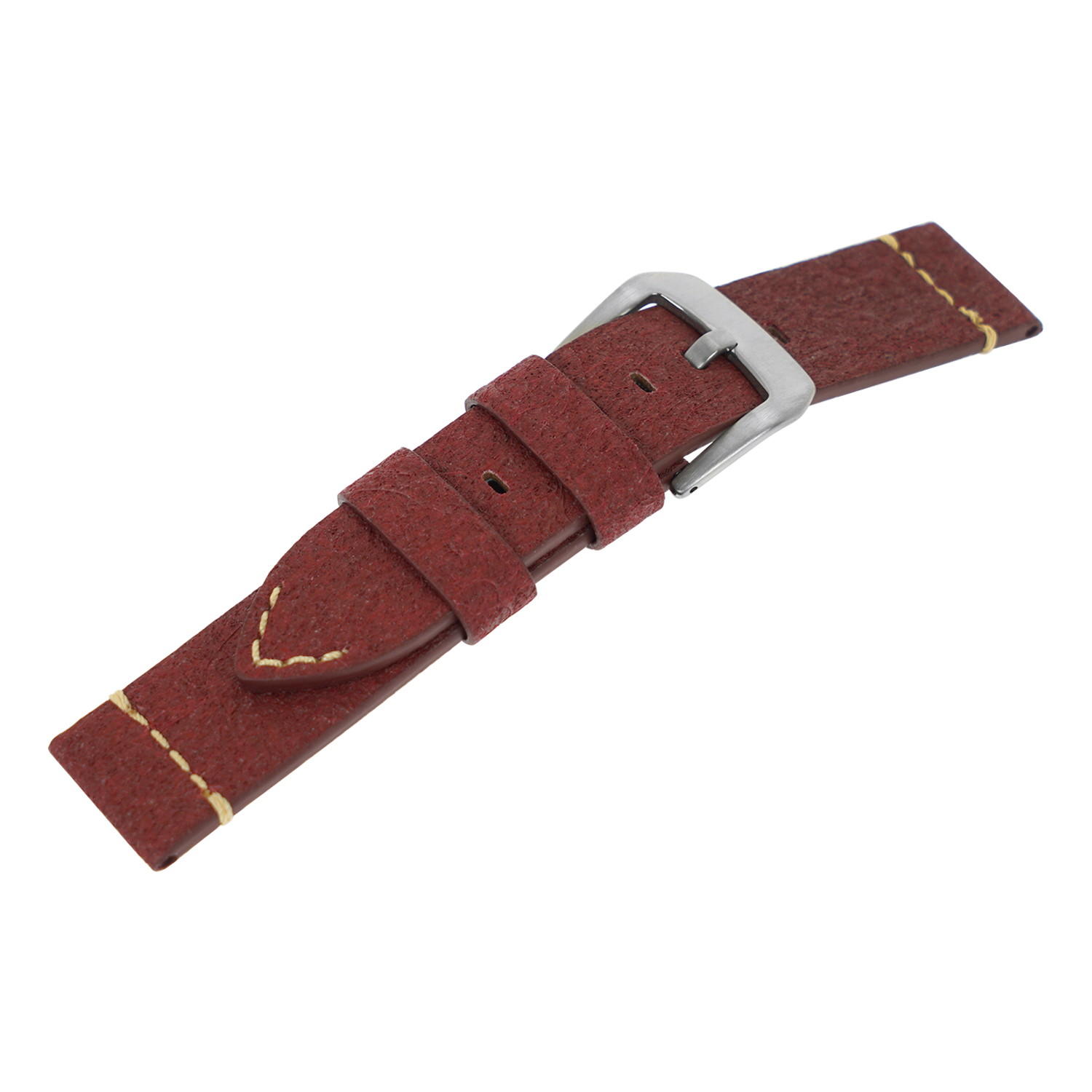 This vegan watch strap is a perfect accessory for your wrist. Made in pineapple leaves, this strap resembles leather, creating a matte finish. It comes with a single prong strap buckle for holding the watch securely. This strap is available in multiple colors for swapping to match any occasion.