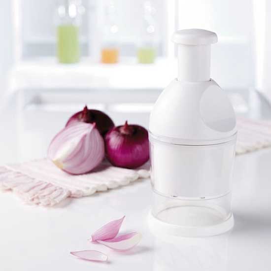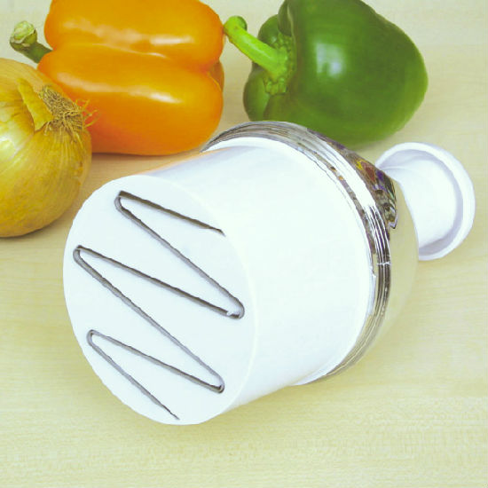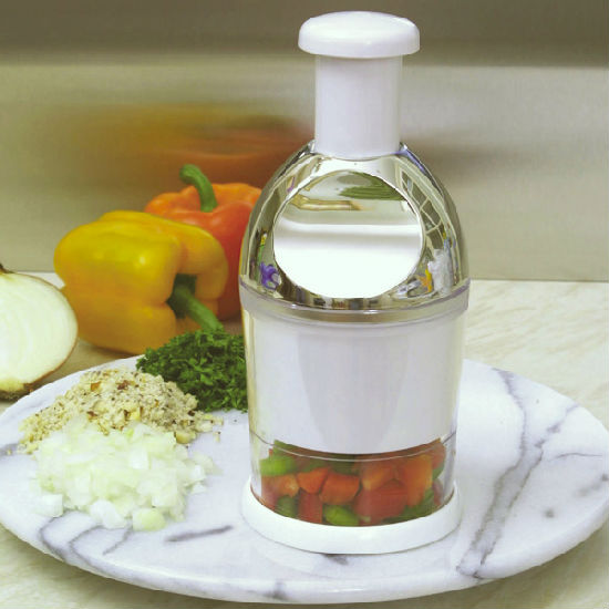 The vegetable chopper offers excellent chopping performance. It will rotate automatically during use. The elegant white finishing easily matches your modern kitchen decor. This vegetable chopper is great for cutting onions, garlics and vegetables.