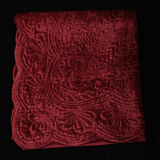 The bed spread is made of velvet with floral embroidery. It is well designed with exceptional quality. Add a luxurious flavor to your bedroom with this burgundy velvet bed spread.