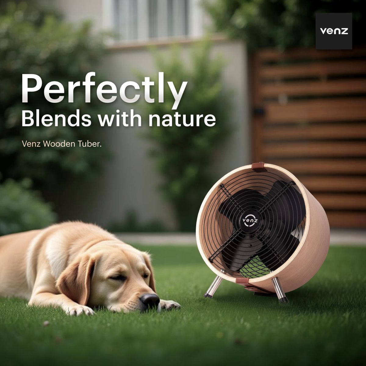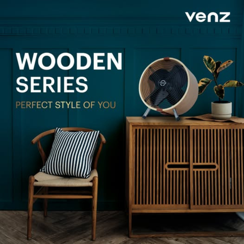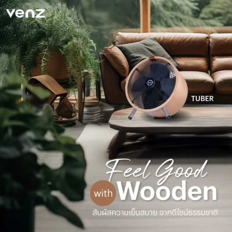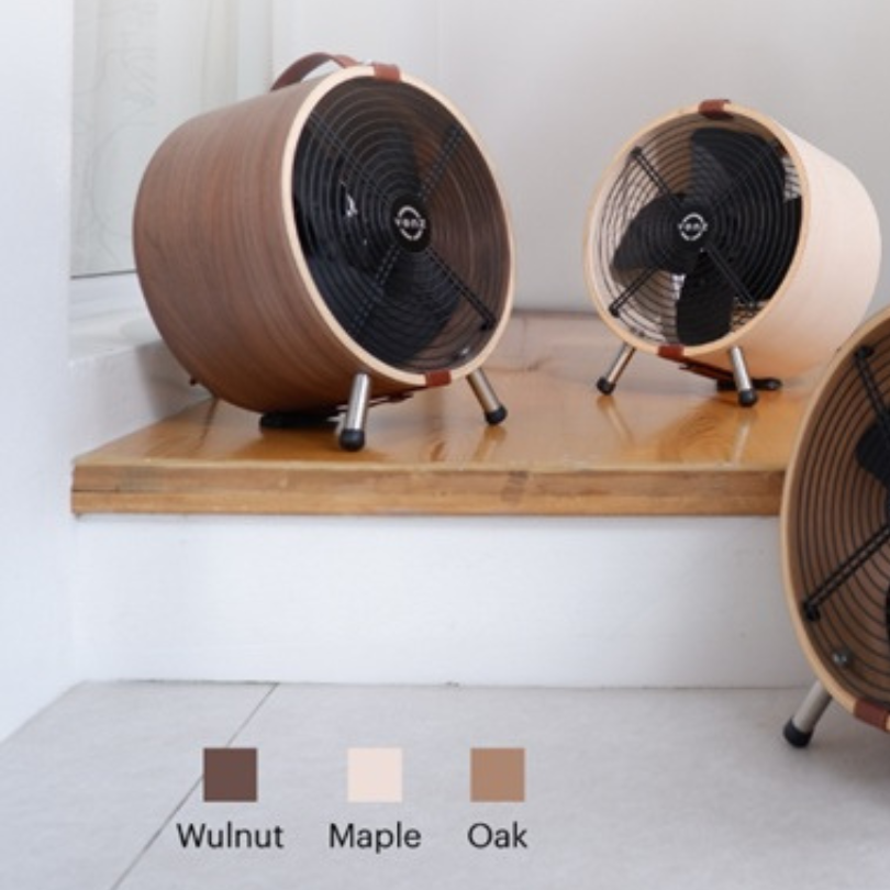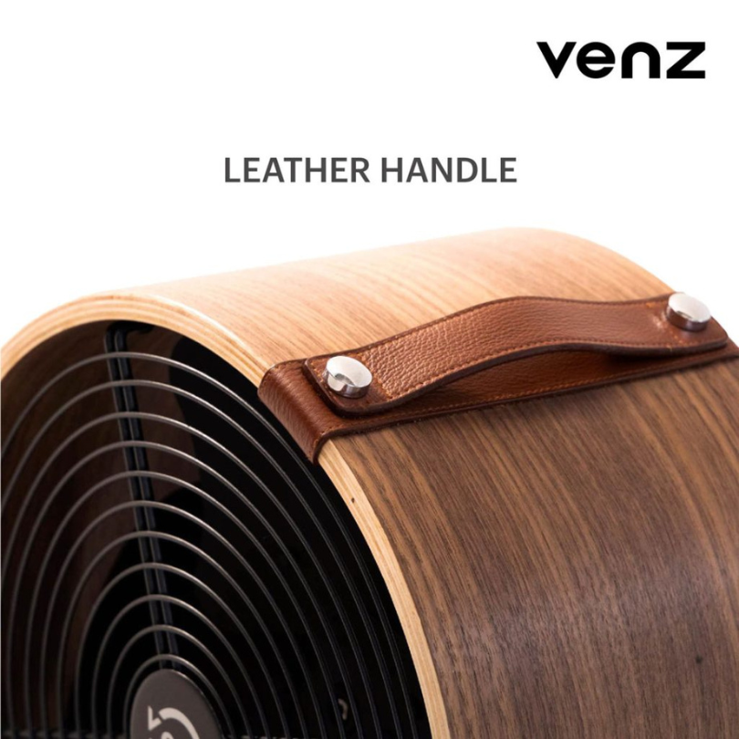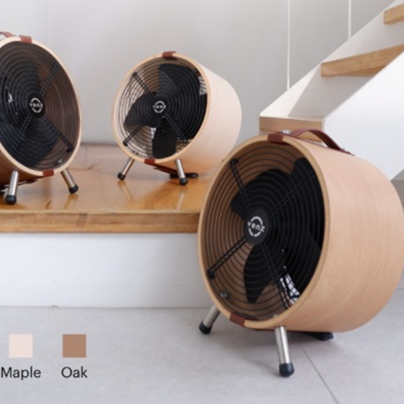 The small cylindrical barrel fan features a wood-patterned design that reflects its identity, with attention to detail in every step of production. It stands out with high-quality wood, and the fan frame is made from real wood that is heat-treated for greater durability compared to typical substitute materials.