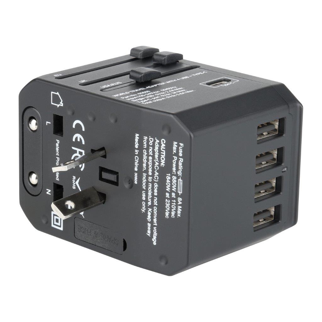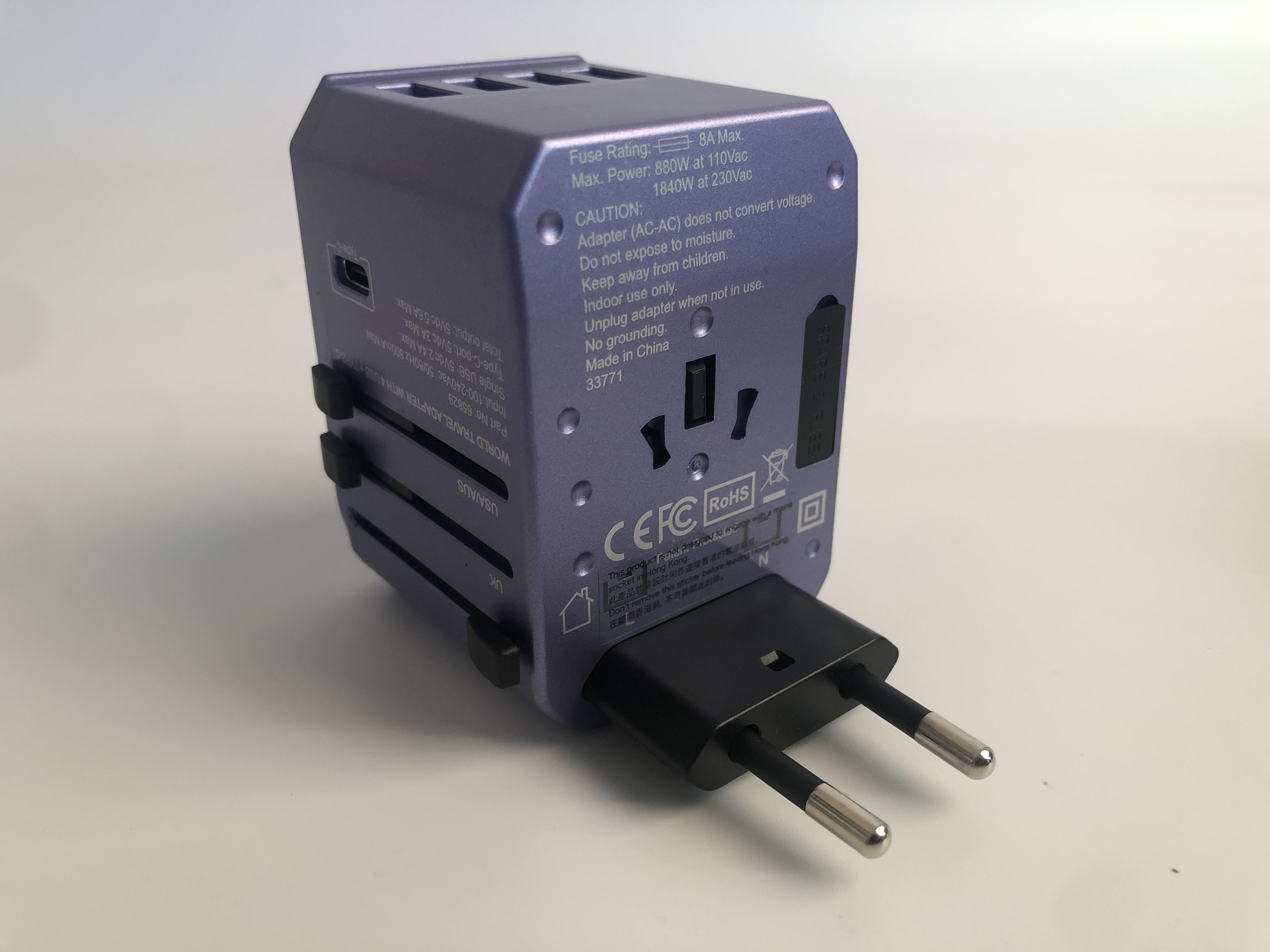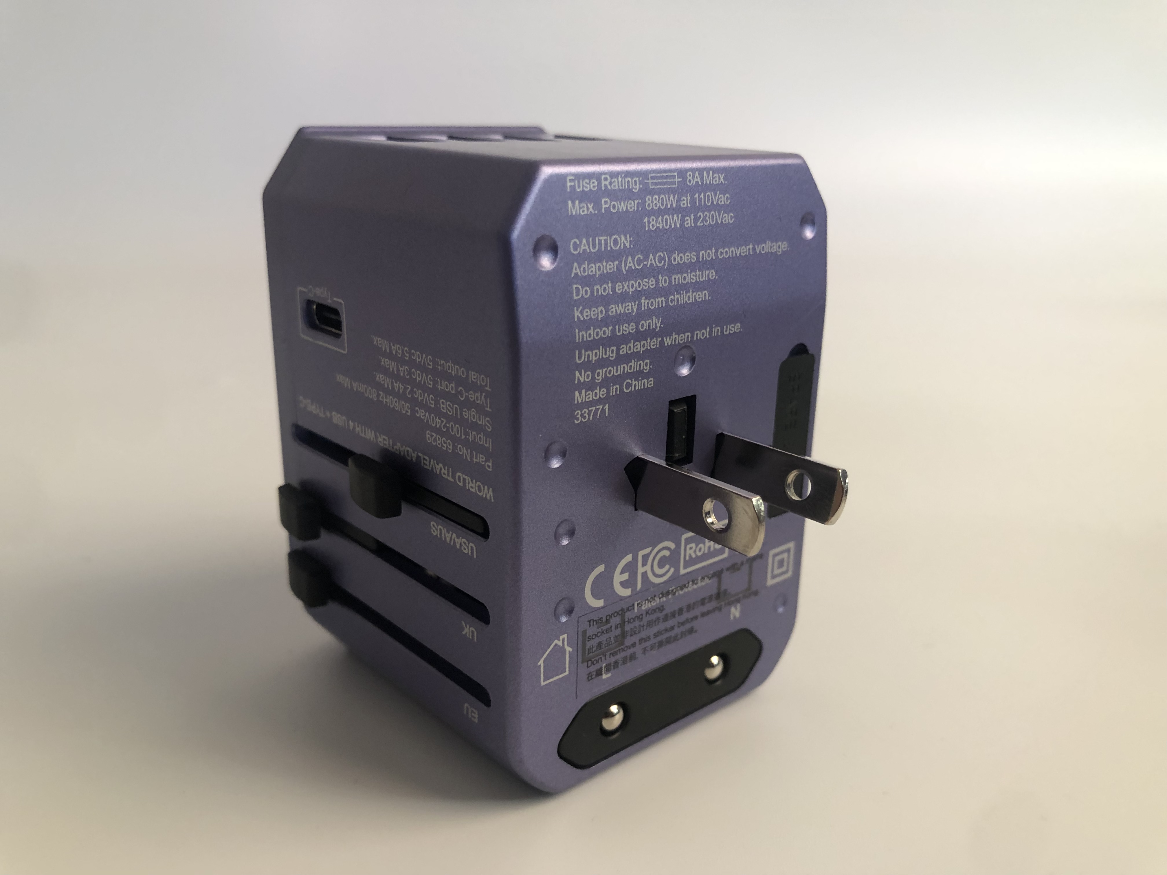 It is a retratable plug design to provide built-in international adaptors including EU, UK, US & AU. It can allow users to travel more than 150 countries around the world