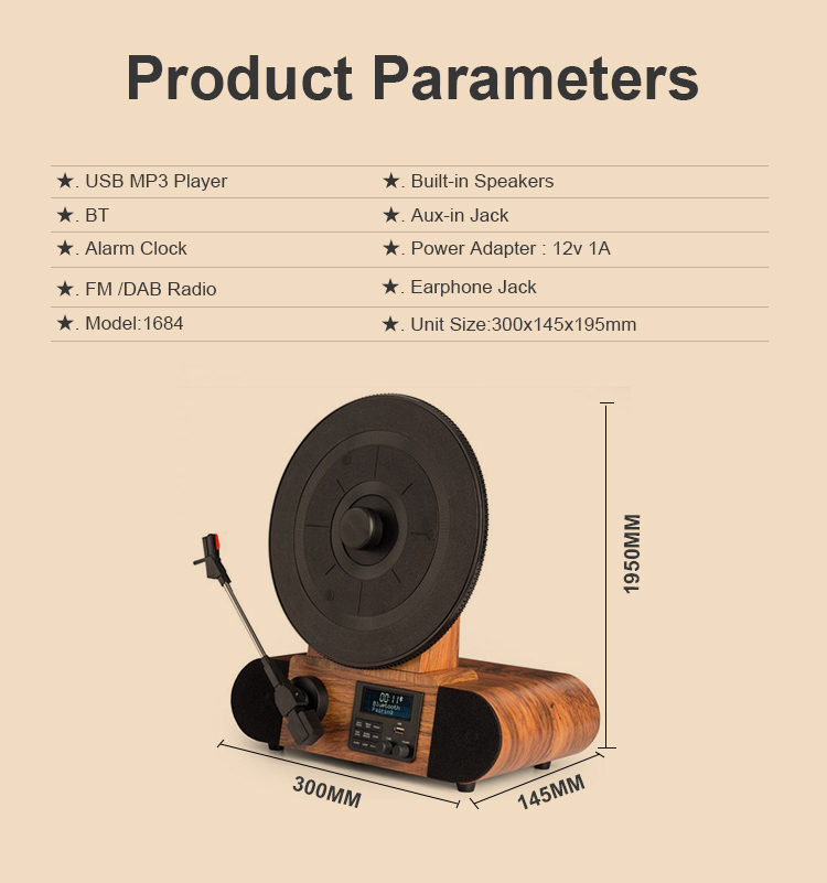 Auto-Stop, 3-speed (33 1/3,45&78 rpm) Turntable