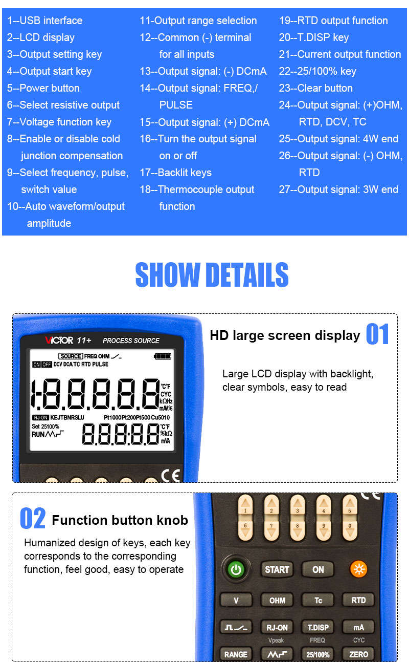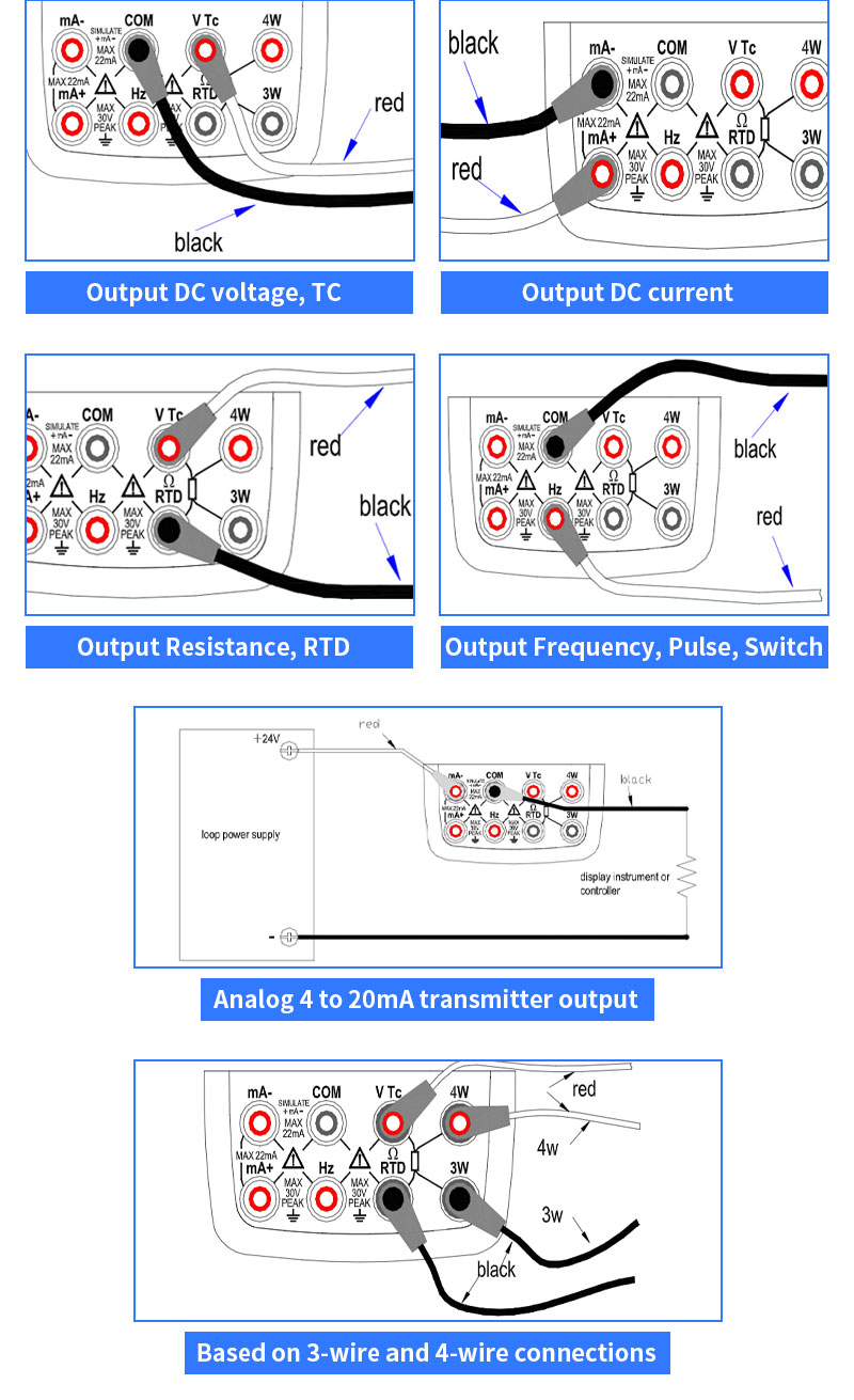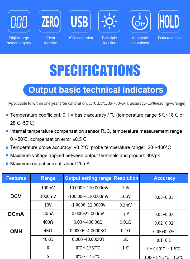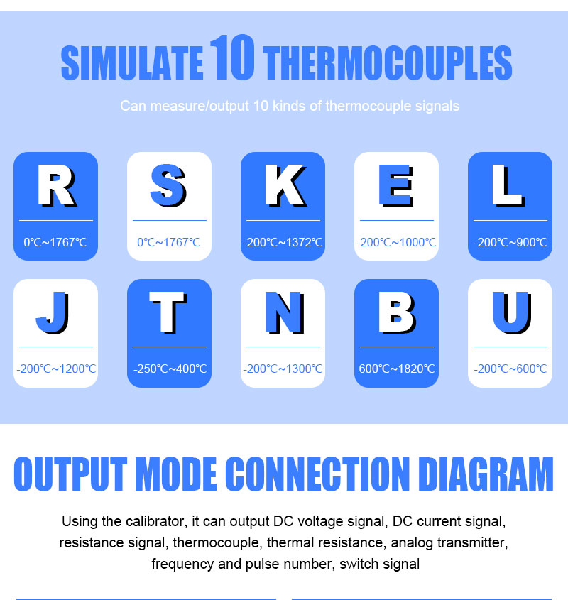 2, The output function: DC voltage, DC current, ohm, analog transmitter, thermocouple, thermal