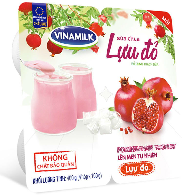 Naturally fermented with Bulgaricus cultures and added with pomegranate and nata de coco, Vinamilk Pomegranate Yogurt is not only a rich source of nutrition but also a great combination in flavor between the pure taste of yogurt and the sour & sweet blend of pomegranate.
