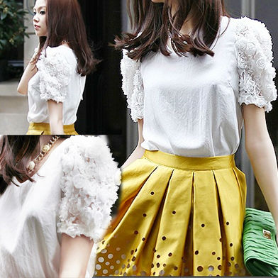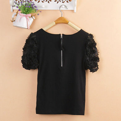 Vintage Elegant Cotton Slim Cut Top with 3D Floral Lace Sleeves
