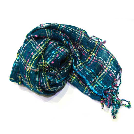The scarf showcases fine multi-color knitted patterns. It is decorated with fringes for added style. This scarf will be an eye-catching addition to your outfit.