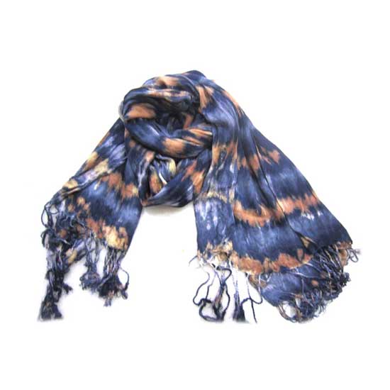 This exquisite scarf comes with gradient tones in blue and brown. It is further complemented with slim fringes. This charming scarf is fabricated from pure viscose.