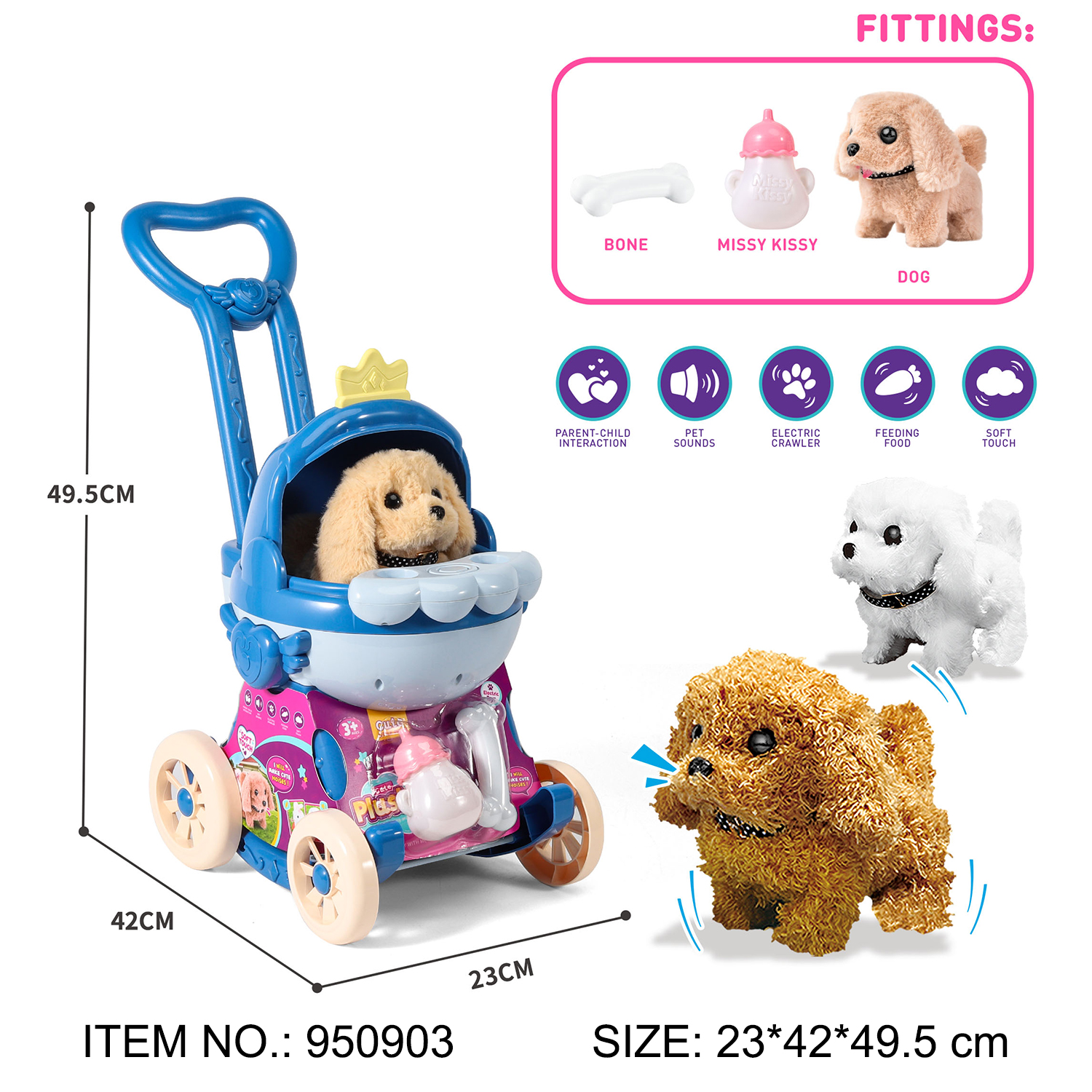 WALKING PLUSH DOG+STROLLER PLAYSET(USE 2 PCS AA NOT INCLUDED),TEST REPORTS:EN71 PART1-2-85 AND PHTHALATE TEST.