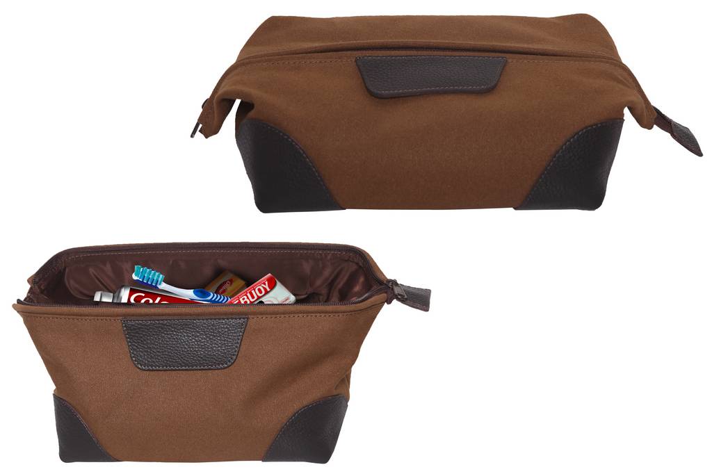 WASH BAG MADE FROM CANVAS AND REAL LEATHER