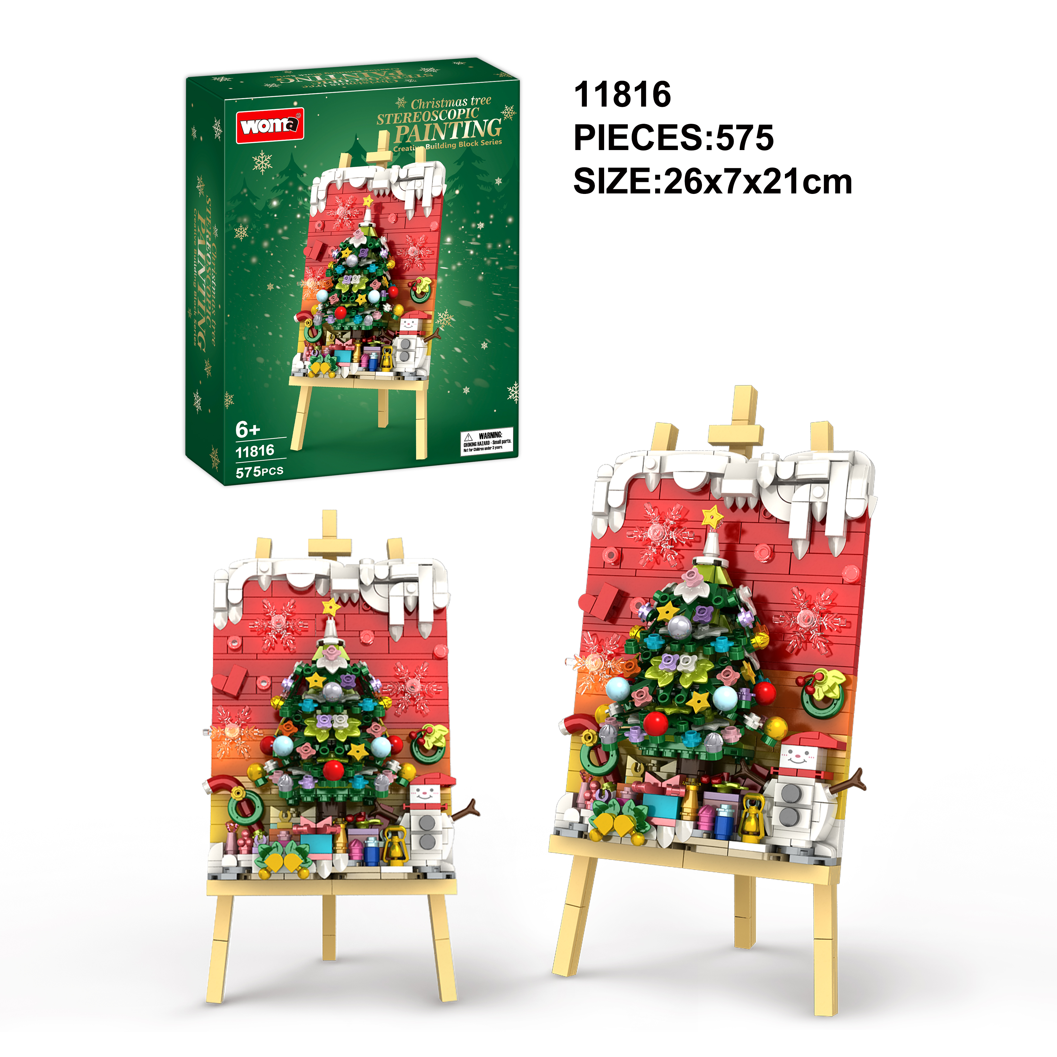 WOMA TOY NEW 2024 Wholesale Kids Plastic Snow Christmas Building Toy Scene Painting Board brick Construction Toy For Gift