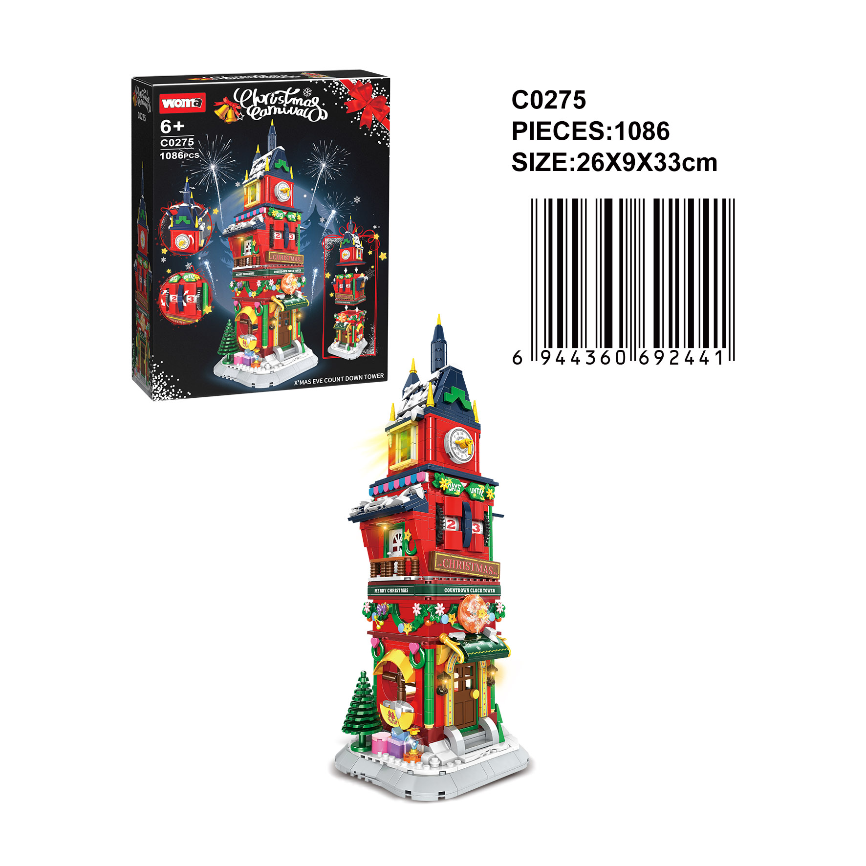WOMA TOY Retail Sale Xmas Kids Adult Moc City Bar Snow Scene Christmas House Tree Model Building Block Set Construction Toy